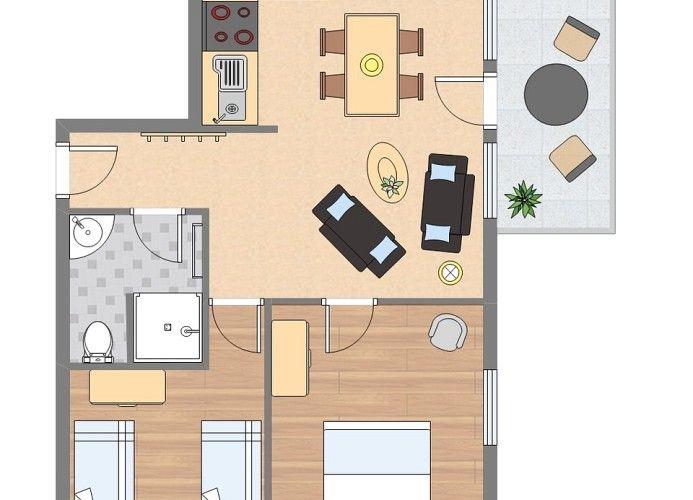 In dieser geschmackvoll eingerichteten Ferienwohnung fühlen sich Erwachsene und Kinder gleichermaßen wohl. Das Wohnzimmer wurde in 2016 neu renoviert und mit schönen neuen Möbeln bestückt. Von hier aus gelangt man auf den schönen Balkon, der ebenfalls komplett neu möbliert wurde. Zwei separate Schlafzimmer versprechen erholsame Nächte - es gibt ein Schlafzimmer mit Doppelbett und ein Schlafzimmer mit zwei Einzelbetten. Ein moderner Flachbild-Fernseher sowie die kostenlose WLAN-Nutzung runden das Angebot dieser schönen Ferienwohnung ab. Das Auto kann auf dem Parkplatz direkt hinter dem Haus abgestellt worden (kostenfrei). Hier befindet sich auch der Abstellschuppen, in dem bereits zwei Fahrräder für schöne Touren in die Umgebung bereitstehen. In der voll ausgestatteten Einbauküche kann sogar die Urlaubswäsche in der wohnungseigenen Waschmaschine gewaschen werden.