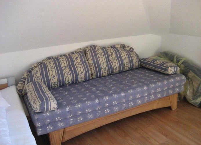 Es gibt ein separates Schlafzimmer mit Doppelbett. Zusätzliche Schlafmöglichkeiten befinden sich auf der Empore, die vom Wohnzimmer aus zu erreichen ist (Achtung! Schmale Treppe, für Kleinkinder daher nur bedingt geeignet).