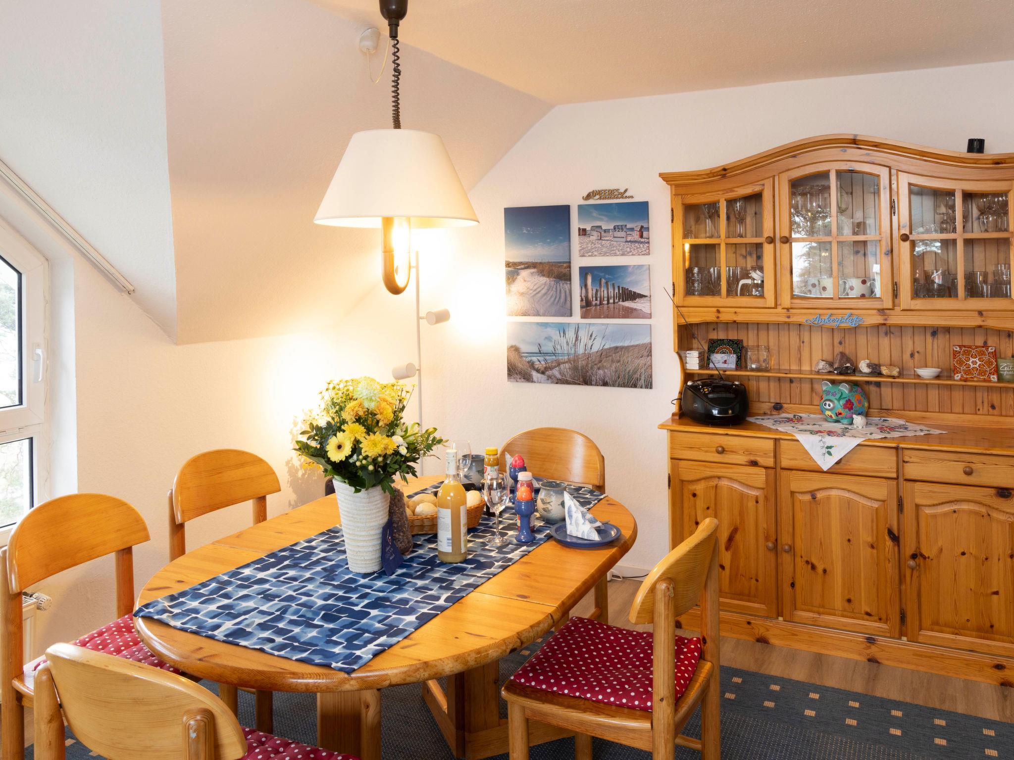 "Blaumuschel (LUB101)", 3-room apartment 70 m2 on 2nd floor. Bright, cosy furnishings: living room with sloping ceilings with dining table, satellite TV and radio. Exit to the balcony. 1 room with 1 double bed. Exit to the balcony. 1 room with sloping ceilings with 2 beds. Open kitchen (oven, dishwasher, 4 ceramic glass hob hotplates, toaster, microwave, electric coffee machine). Bath/WC. Balcony, south facing position and west facing position. Balcony furniture. Beautiful view of the sea. Facilities: children's high chair, baby cot. Internet (WiFi, free). Please note: non-smokers only. Smoke alarm.