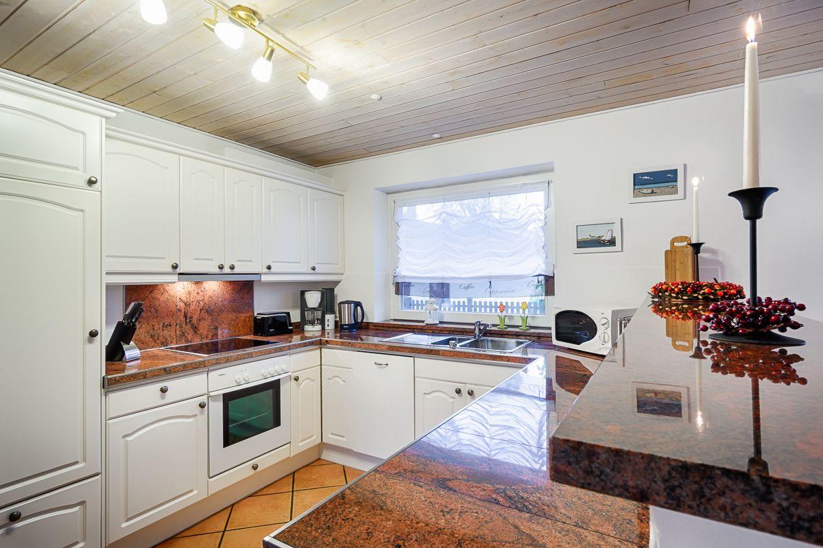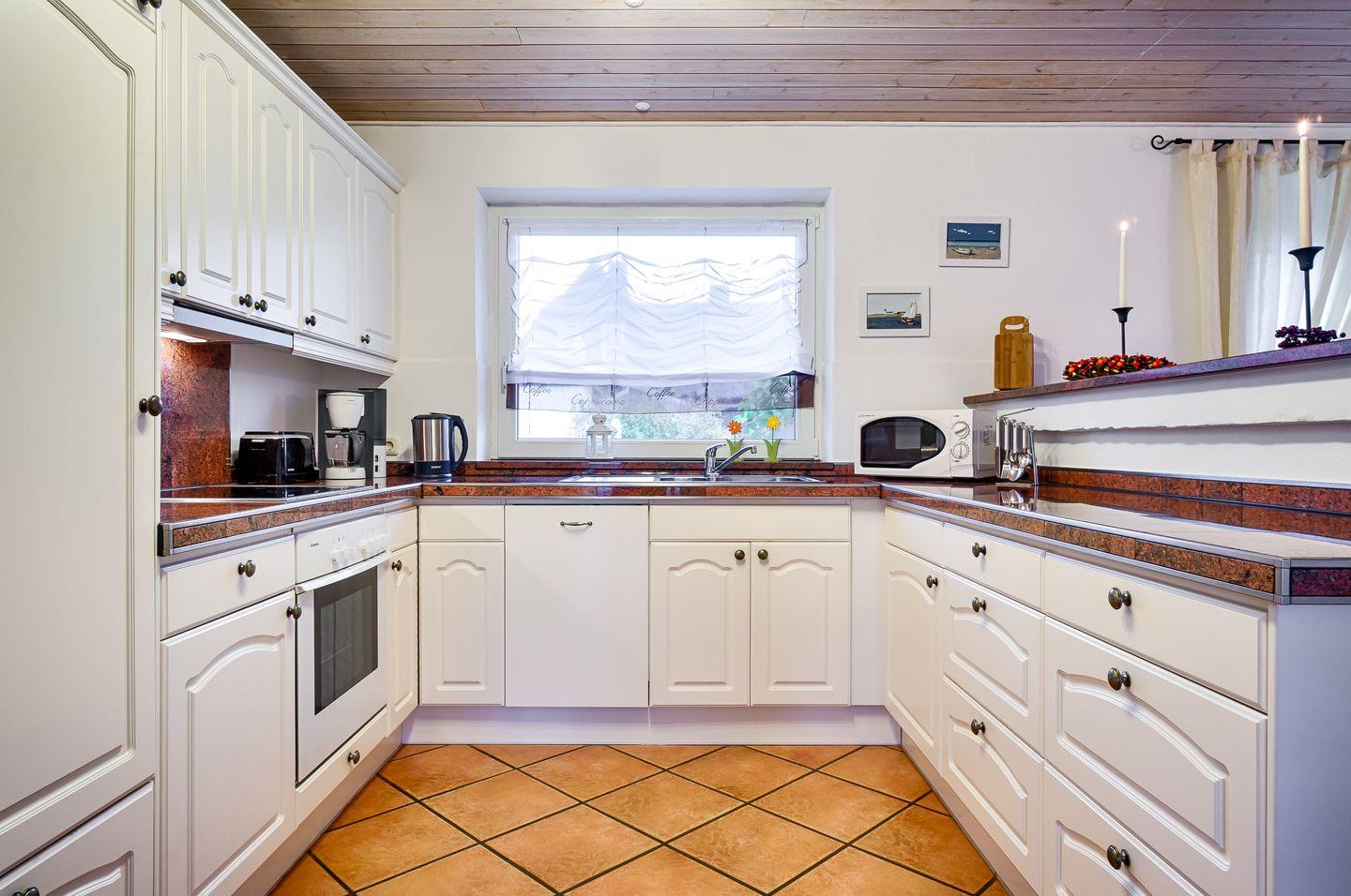 voll ausgestattete U-Küche mit Granitarbeitsfläche
