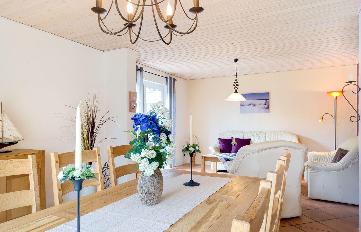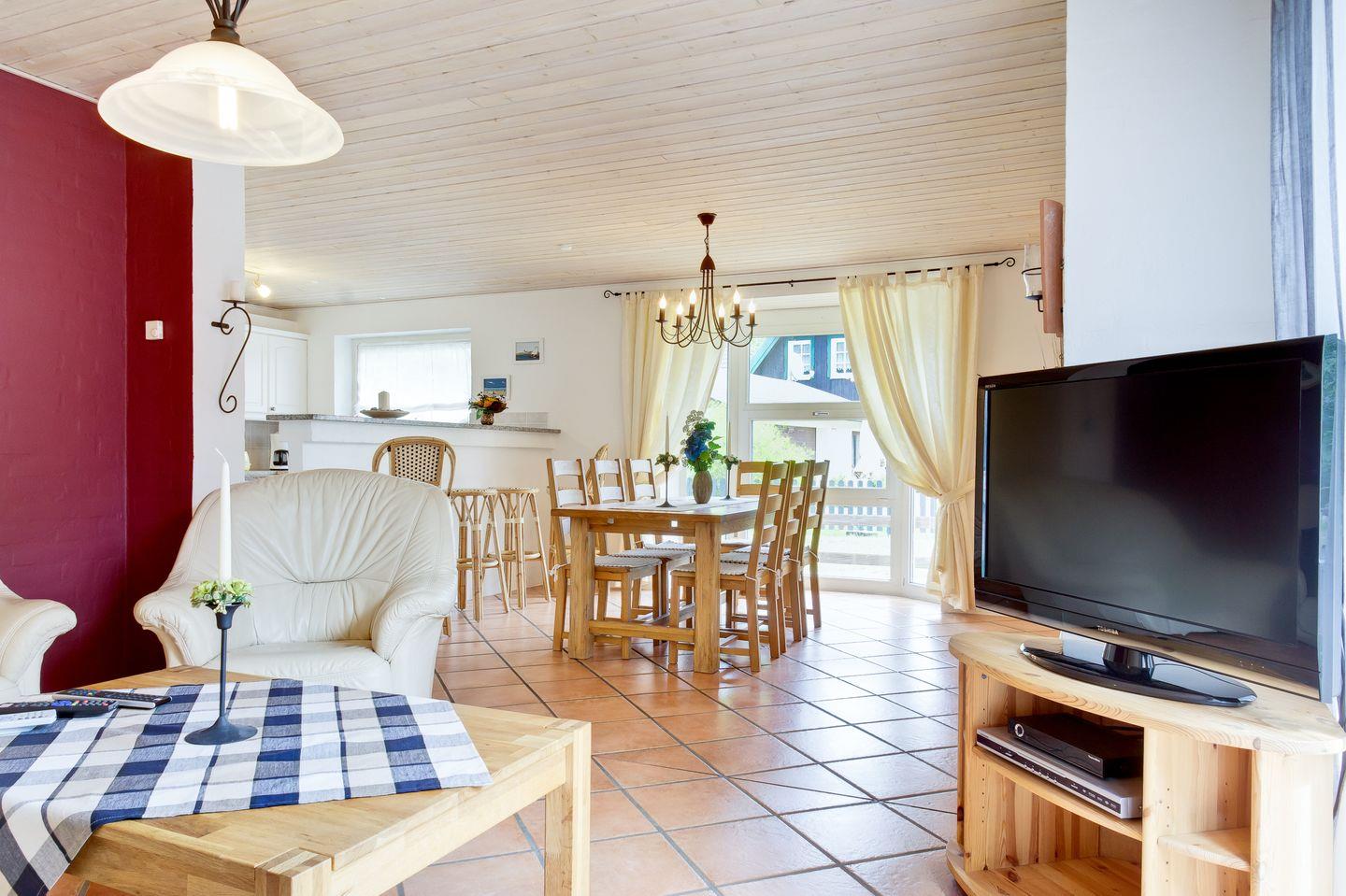 45 m² großer Wohnraum mit 3-teiliger Ledergarnitur, 46 Zoll LED TV , CD-Radio mit USB- u. iPod-Anschluss