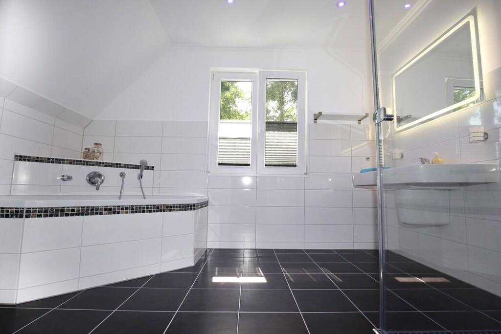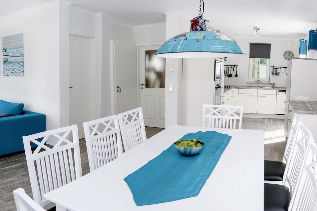 Drööm unter Reet 2. Our holiday home on the Baltic Sea for 8+1 persons, with sauna, 2 bathrooms, 4 bedrooms and a fireplace.