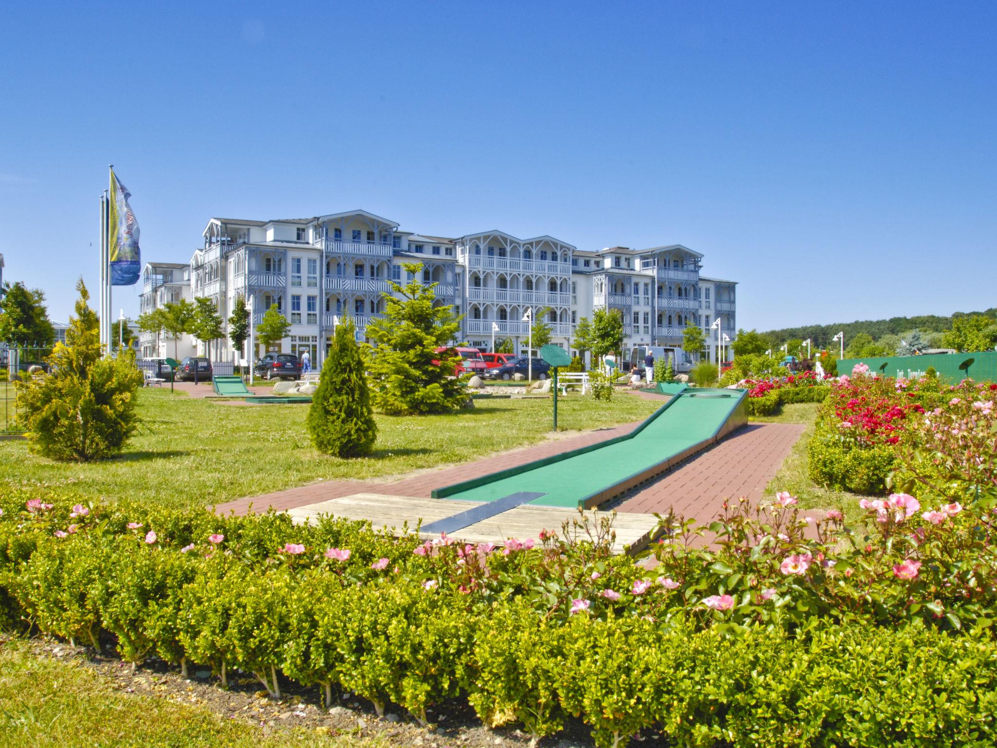 Resort "Seepark Sellin", 4 storeys. 8 houses in the residence. 200 apartments in the residence. 800 m from the centre of Sellin, on the outskirts, 8 km from the centre of Göhren, 10 km from the centre of Binz, 800 m from the sea. For shared use: property, well-kept garden with lawn. Table tennis, children's playground. Private: children's playground. In the complex: reception, restaurant, fitness room, table tennis, table football, boutique, storage room for bicycles, central heating system, washing machine (extra), tumble dryer (for shared use, extra), bicycle rental. Bread roll service. Communal covered parking (extra). Supermarket 100 m, bus stop "Sellin, Hauptstrasse" 700 m, railway station "Sellin Ost" 400 m, sandy beach 800 m, indoor swimming pool 100 m. The photo is just an example. All houses/apartments are individually designed/furnished. 3 free SKY channels included. AHOI swimming pool approx. 100m away, discount available at reception.