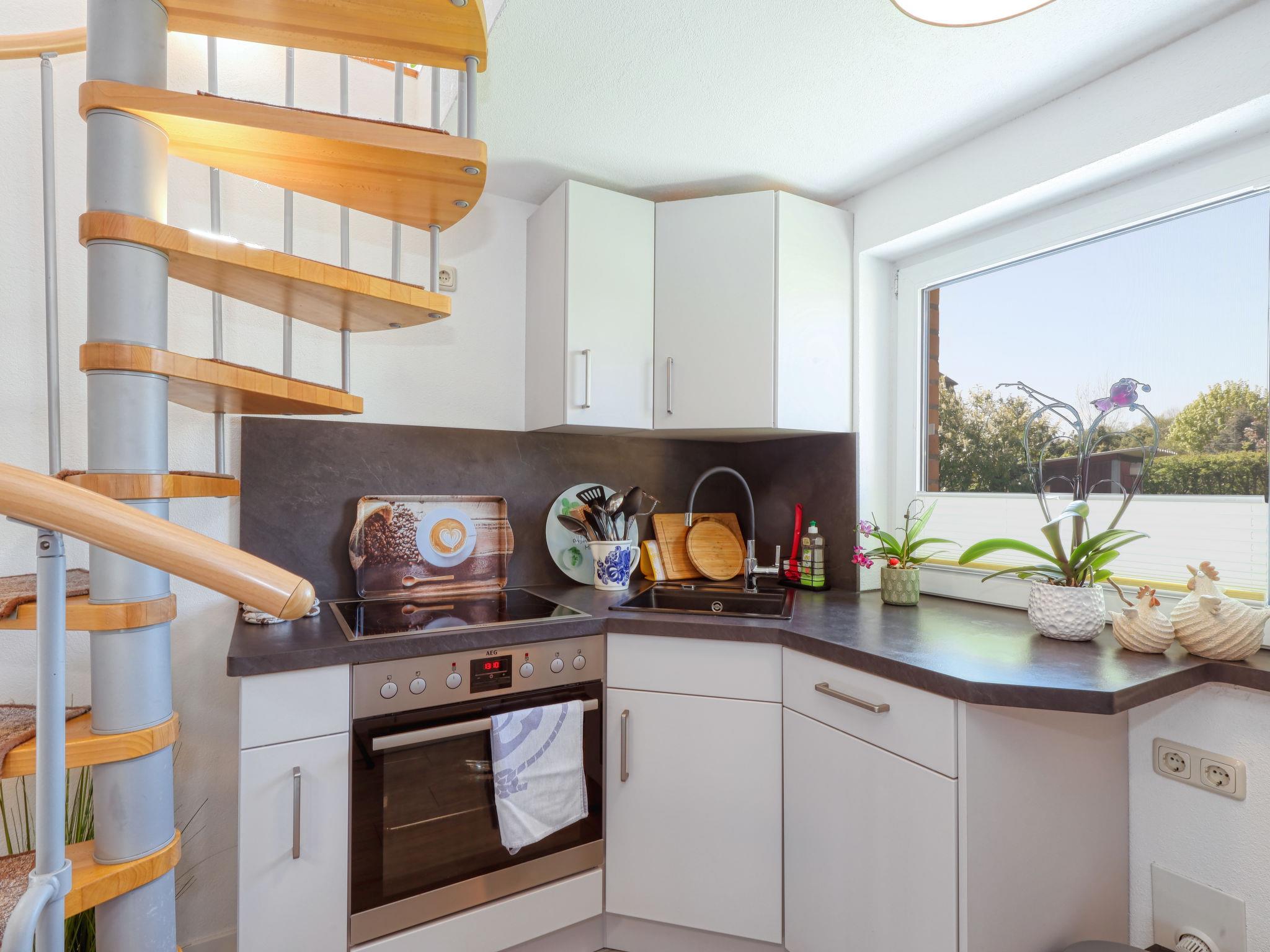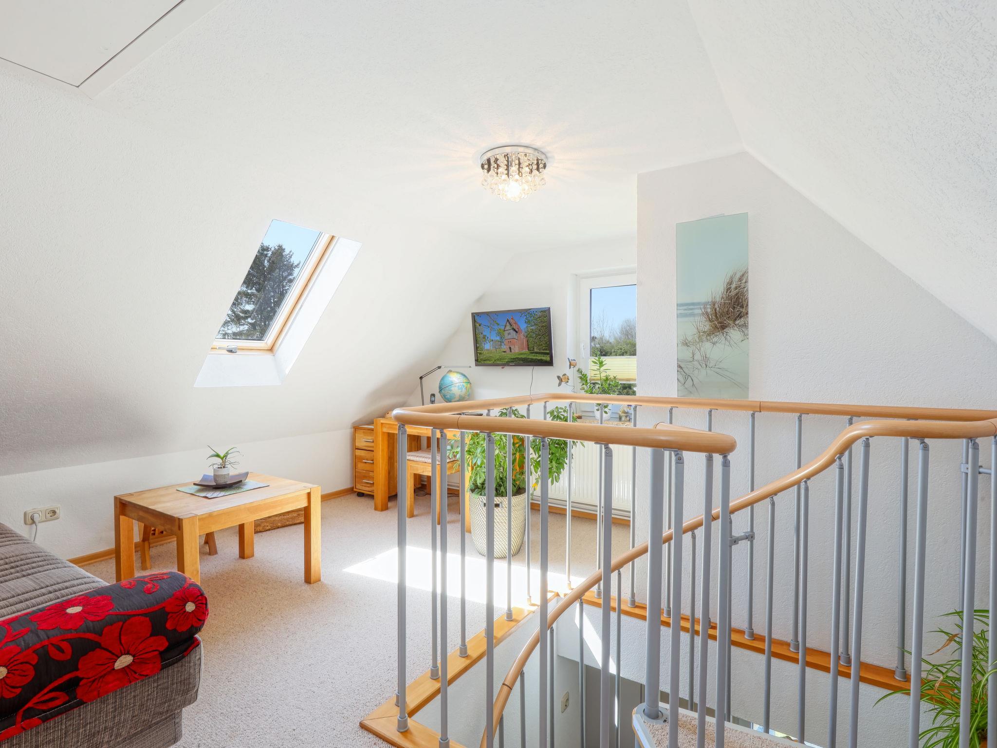 3-room house 85 m2. Tasteful and cosy furnishings: living/dining room with Scandinavian wood stove, satellite TV and gas heating. 1 double bedroom with 1 double bed (180 cm, length 200 cm). Open kitchen (oven, dishwasher, 4 ceramic glass hob hotplates, toaster, kettle, microwave, electric coffee machine). Shower/WC. Underfloor heating. Upper floor: (spiral staircase) living/sleeping room with sloping ceilings with 1 double bed (180 cm, length 200 cm). Large terrace 15 m2, small terrace 4 m2. Terrace furniture, barbecue, deck chairs (2). Facilities: children's high chair, baby cot for up to 2 year olds. Internet (WiFi, free). Please note: suitable for families. Non-smoking house. Smoke alarm.