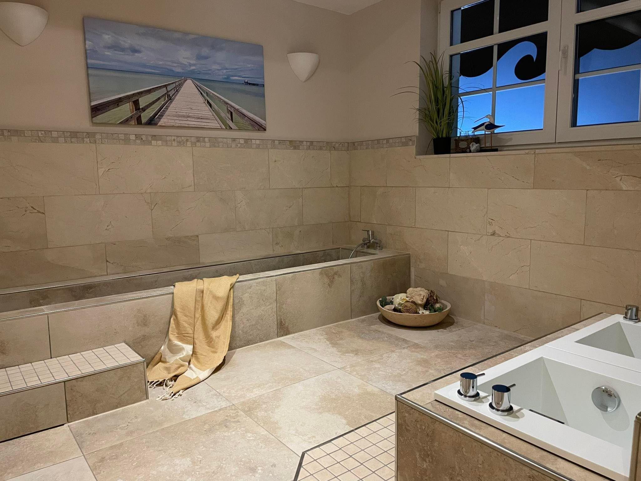 From the living room, you can reach the thatched-roof balcony, which invites you to relax with its south-east exposure, rattan balcony furniture and parasol. There is a car parking space and a room for bicycles in the underground car park. There is also a communal washing machine and tumble dryer in the building. The beautifully maintained garden is shared by all residents of the house. A special feature is the wellness area attached to the house with three saunas, relaxation tubs, relaxation room, showers and much more. Use of the area is already included in the rental price.