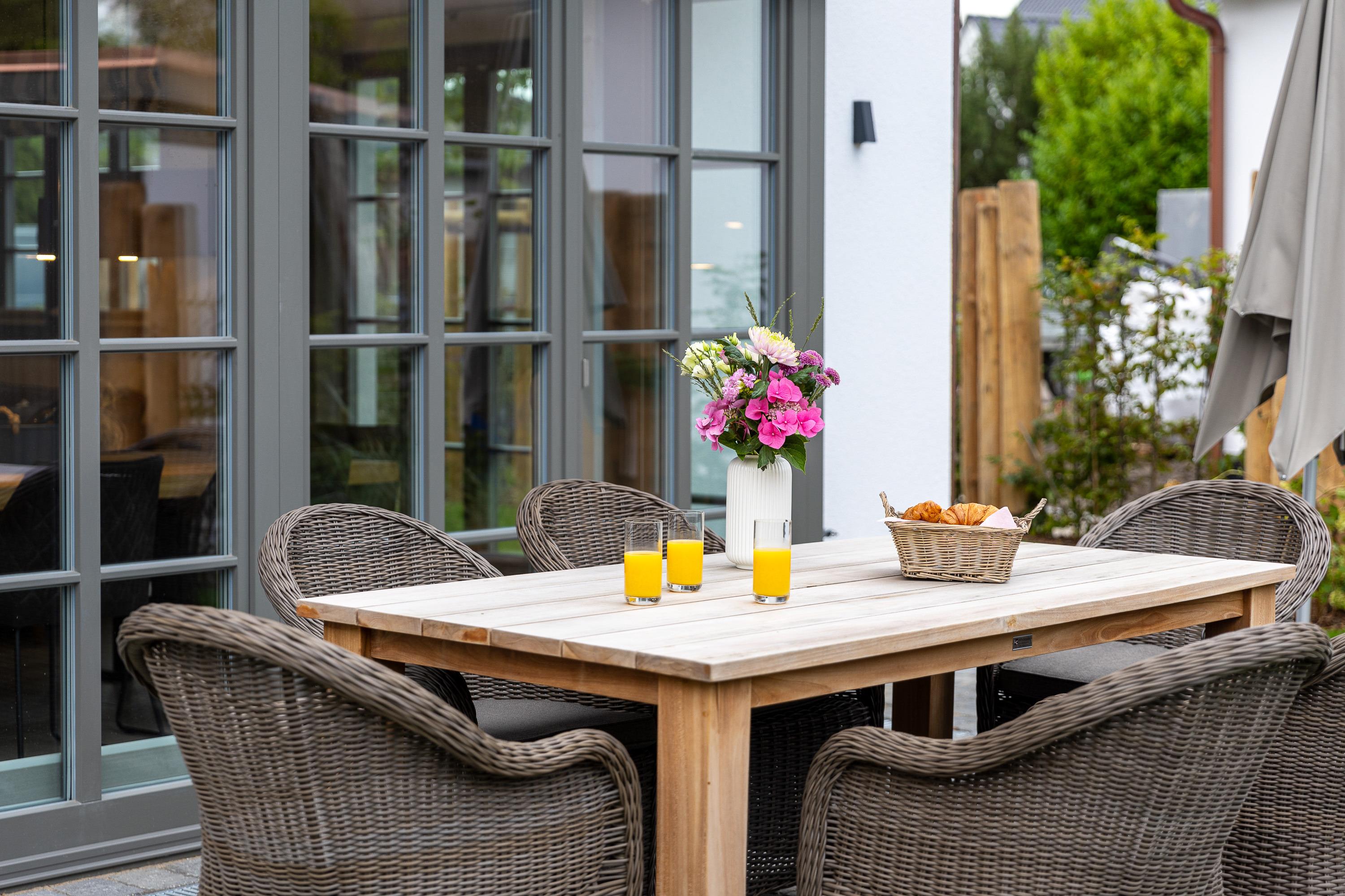 Die Außenanlagen des Hauses sind genauso beeindruckend wie das Innere. Die Terrasse ist ein idealer Ort zum Entspannen und Genießen und ihr Hund kann hier toben und spielen.[nbsp] Die Lage in Strandnähe ermöglicht es Ihnen, jederzeit einen Spaziergang entlang des Meeres zu unternehmen.