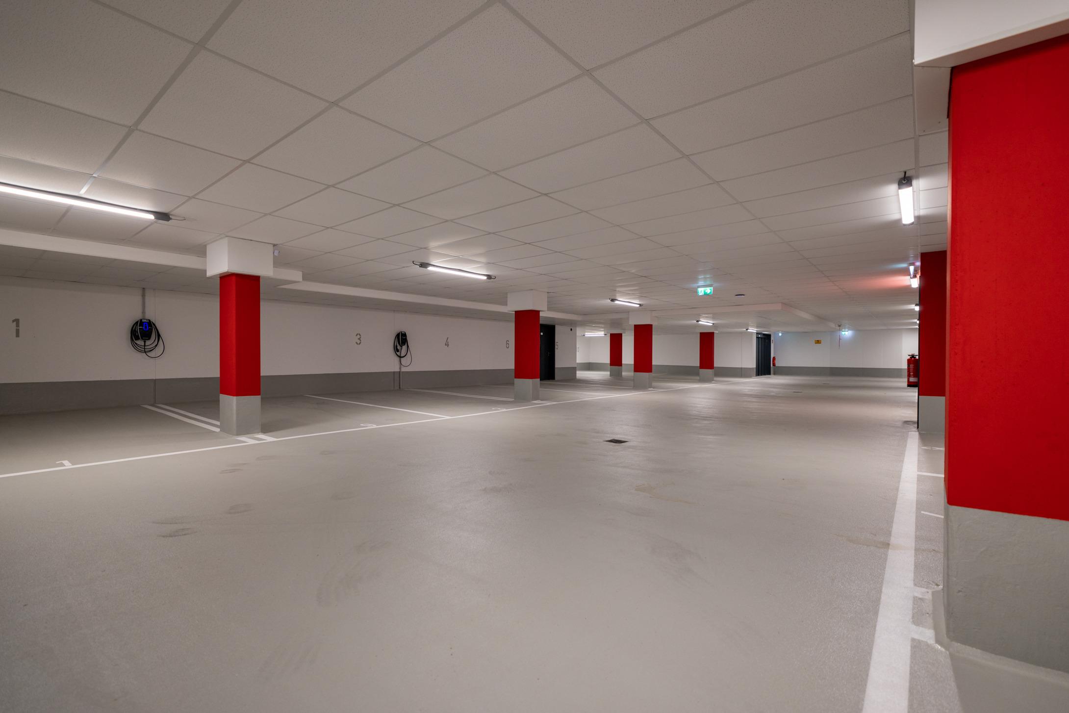 Privater Tiefgaragenstellplatz mit Ladefunktion, bequem erreichbar über Autoaufzug