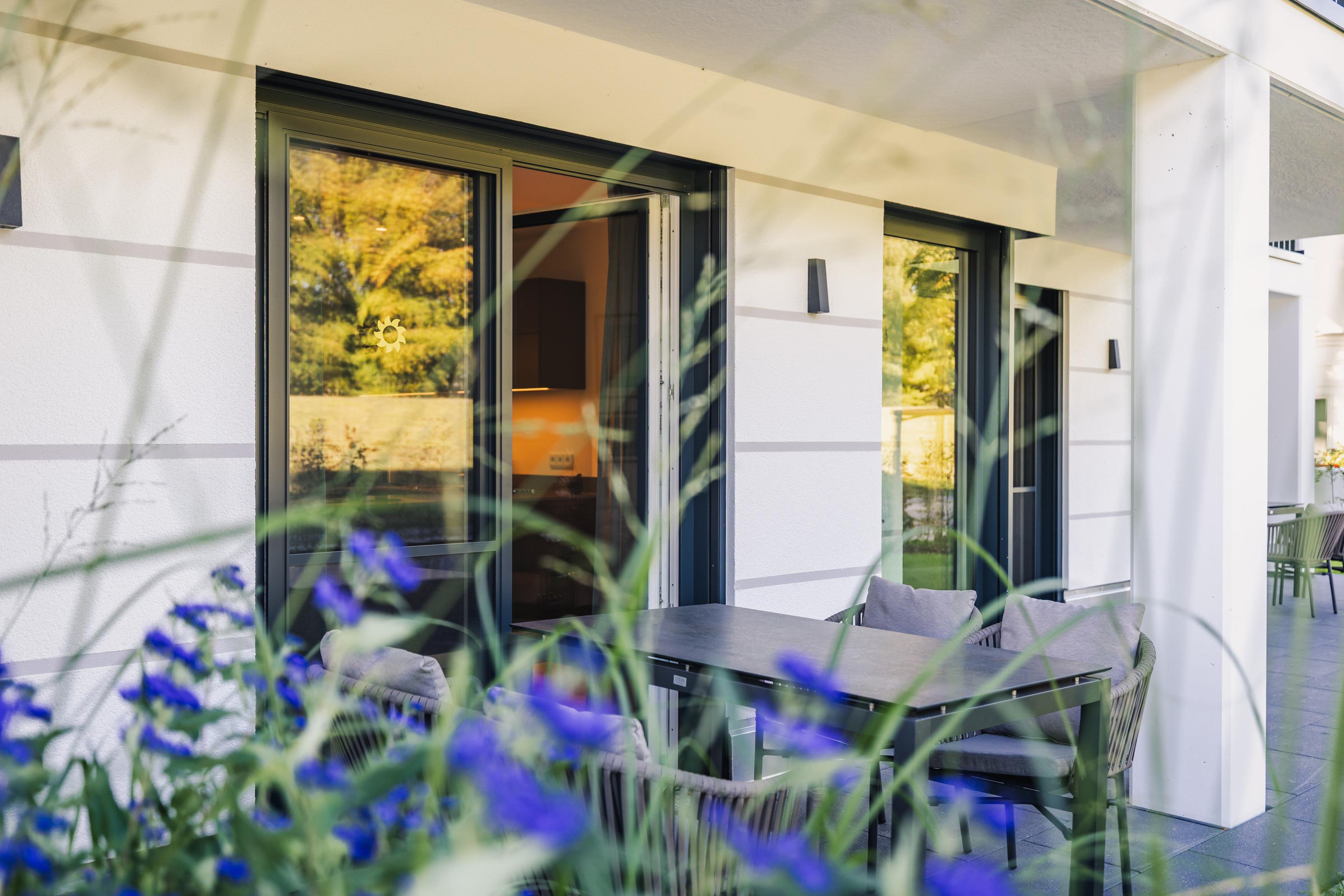 Das stilvolle 2-Zimmer-Appartement bietet auf ca. 50?m² modernen Wohnkomfort in ruhiger Lage. Große Fensterflächen lassen viel Tageslicht in den Wohnbereich und geben den Blick frei auf den liebevoll angelegten Garten. Die angrenzende Nordterrasse lädt auch an warmen Sommertagen zu angenehmer Kühle und entspannten Stunden im Freien ein.
