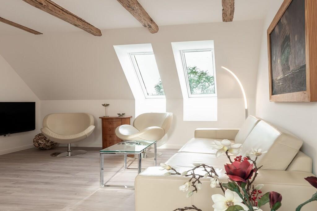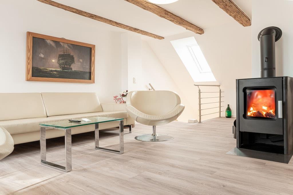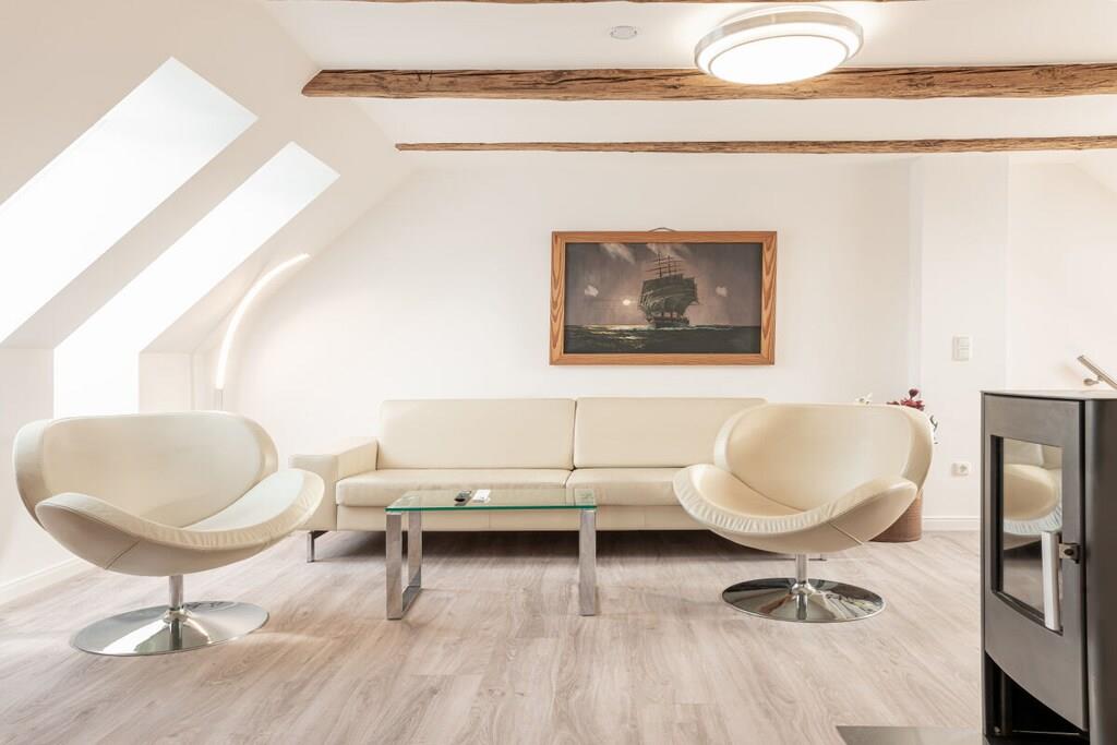 Lassen Sie sich himmlisch verwöhnen! In unserer 2023 kernsanierten Maisonette-Wohnung Himmel werden sie die Leichtigkeit der Urlaubstage mit jeder Faser spüren. Die moderne Fußbodenheizung sorgt für wohlige Wärme. Auf 65 qm gibt es zwei Schlafzimmer mit insgesamt vier Schlafplätzen (je ein Doppelbett (180x200 und 140x200)) und ein gemütliches Wohnzimmer mit einem Kaminofen für romantische Stunden. Wie wäre es zum Start des Tages mit einem ersten Spaziergang, um die Sonneninsel Usedom zu entdecken. Und wie wäre es zum Ausklang eines romantischen Abends mit etwas Leckerem vom Grill auf der Terrasse? Bei uns bleiben keine Wünsche offen.