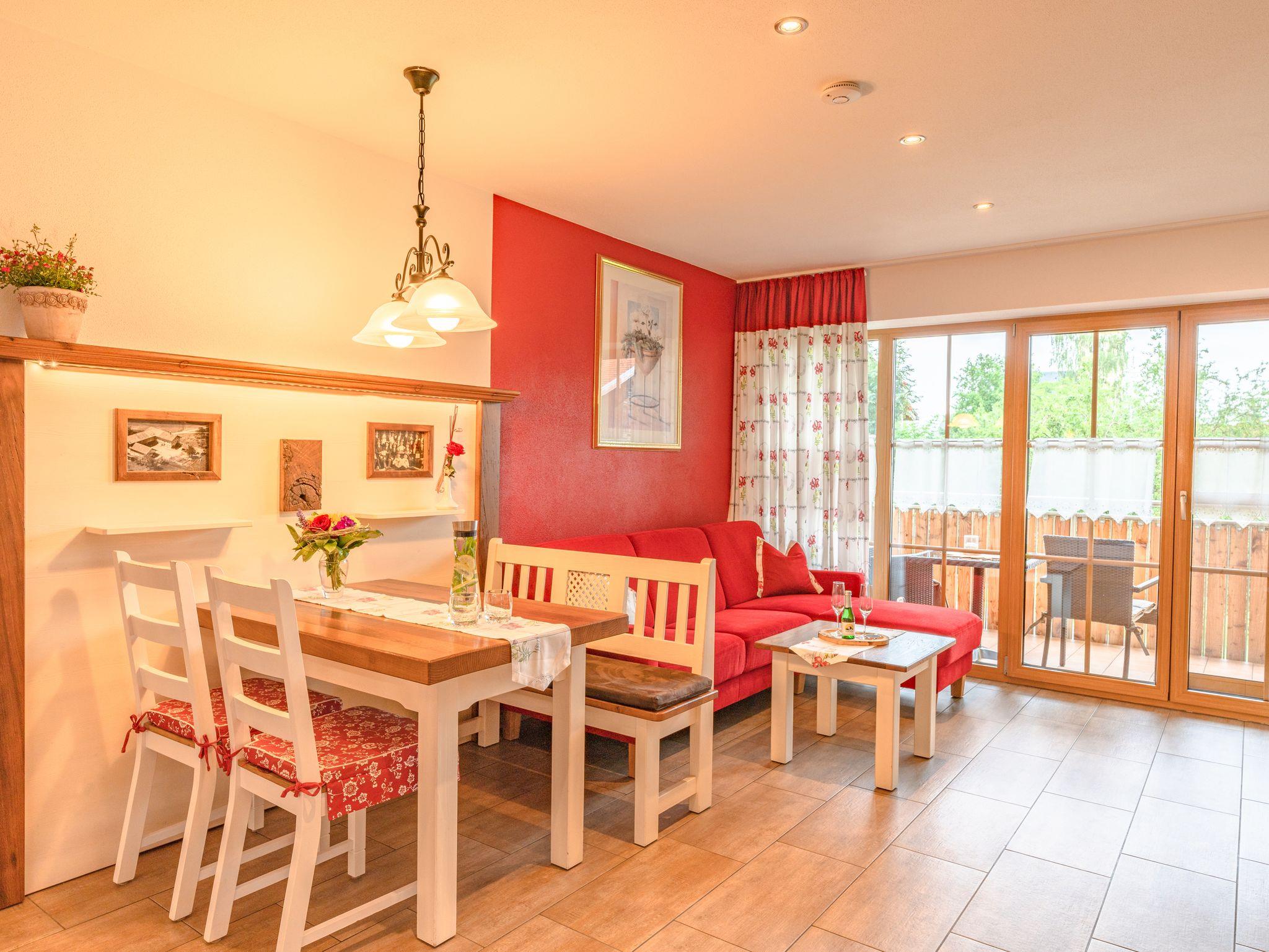 Unsere Ferienwohnung Mohnblume befindet sich im Erdgeschoss unseres Gästehauses und bietet mit ihren ca. 65 m² genügend Platz für 2 bis 4 Personen. Die barrierefreie liebevoll eingerichtete Ferienwohnung ist modern und hochwertig ausgestattet und lässt keine Wünsche offen. Sie verfügt über zwei getrennte Schlafzimmer sowie einen großen Balkon der zum Sonnen einlädt. Die Küche ist komplett ausgestattet mit E-Herd, Backofen, Kühlschrank mit Gefrierfach, Mikrowelle, Geschirrspüler, Waschmaschine, Kaffeemaschine, Wasserkocher, Eierkocher, Handrührgerät, Stabmixer und Toaster.