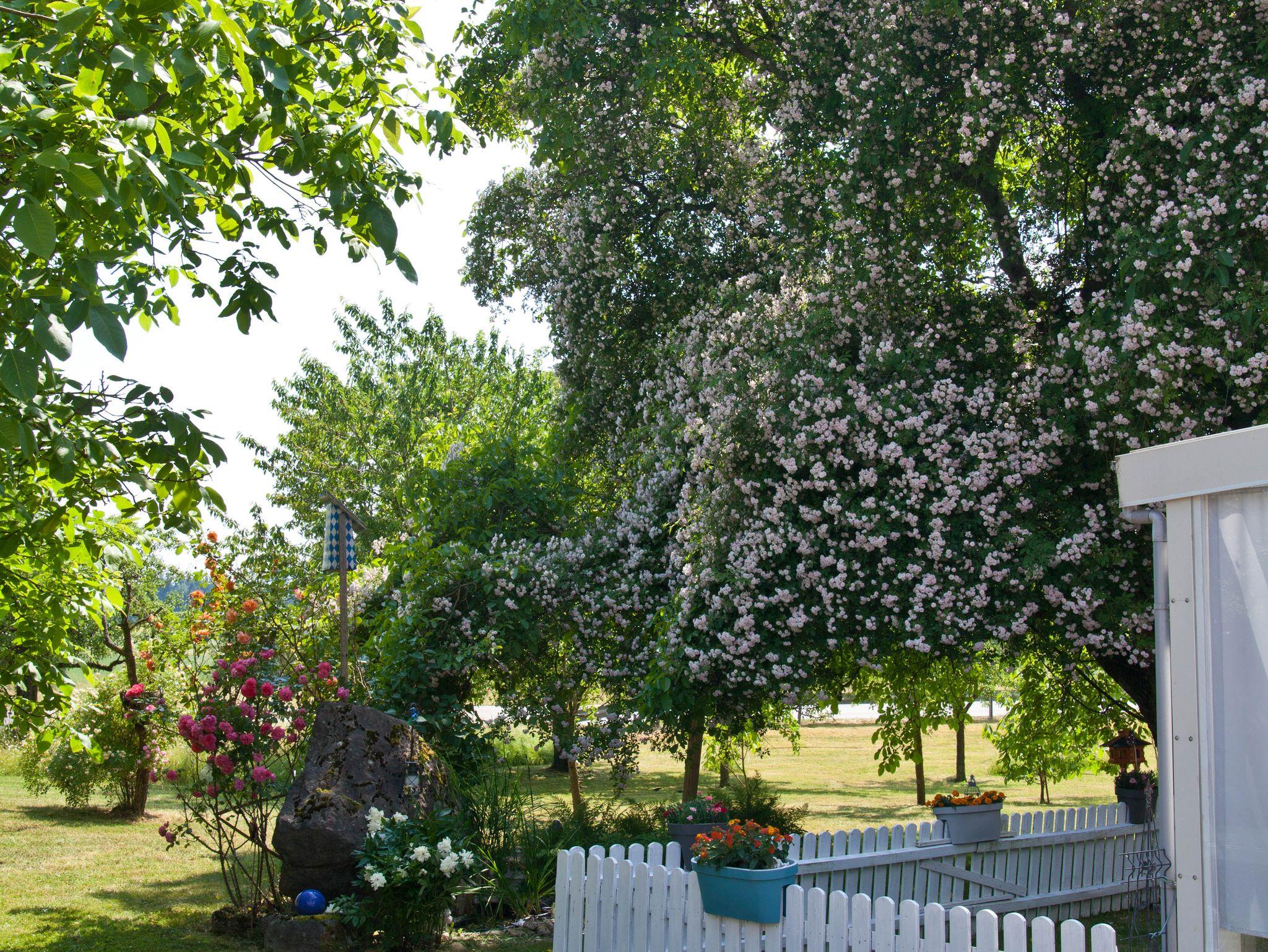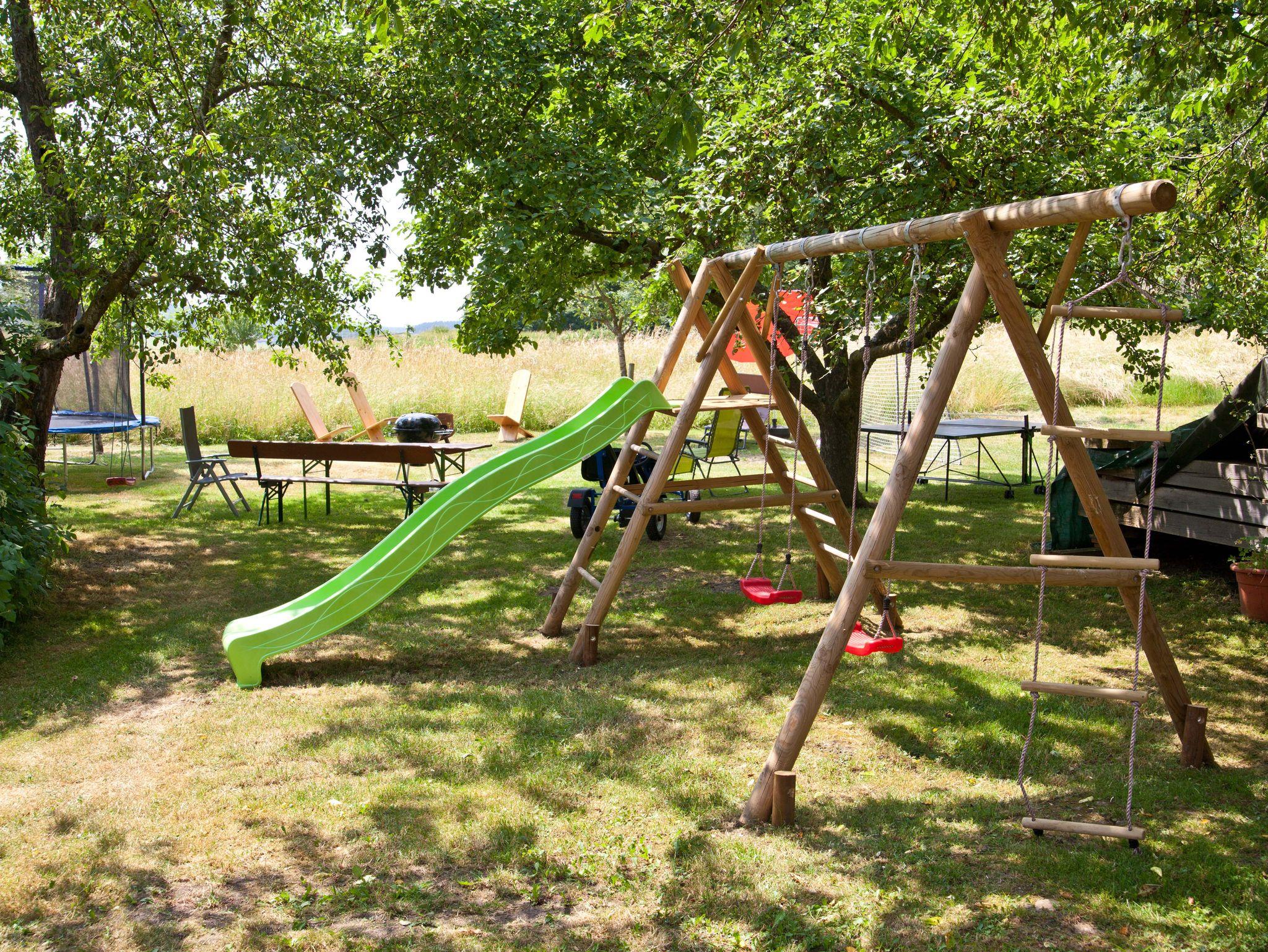 Von den 2 Balkonen aus, haben Sie einen herrlichen Blick in den Obstanger und den Gästegarten mit Spielplatz.