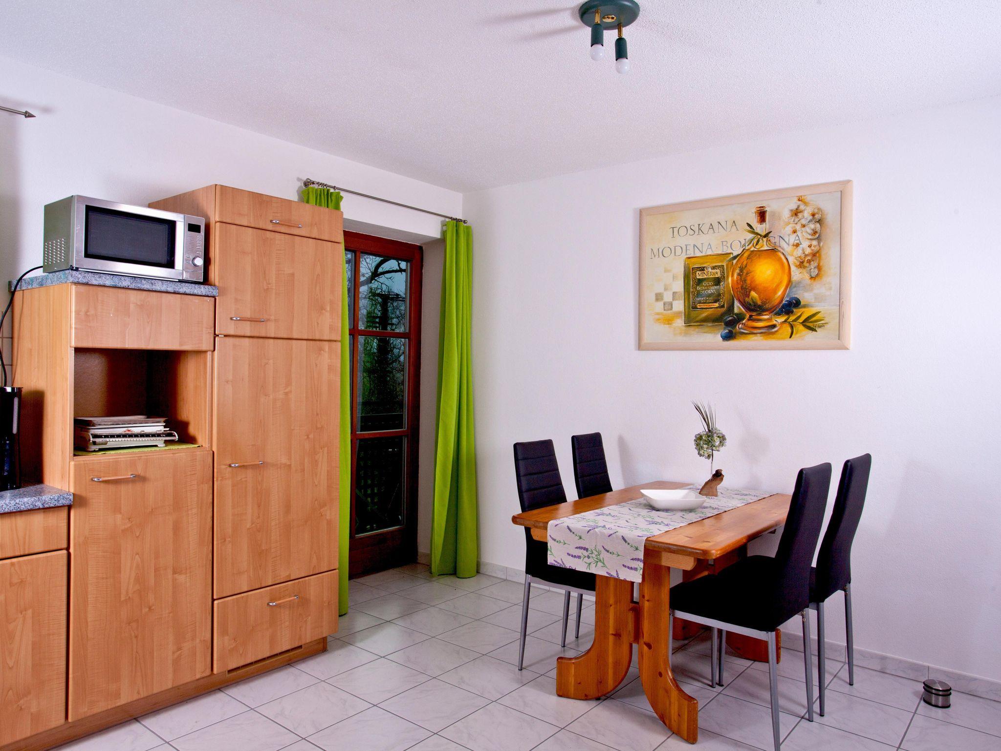 Die Wohnung besitzt eine voll ausgestattete Küche mit Essbereich. Ein Wohnzimmer mit Kachelofen,