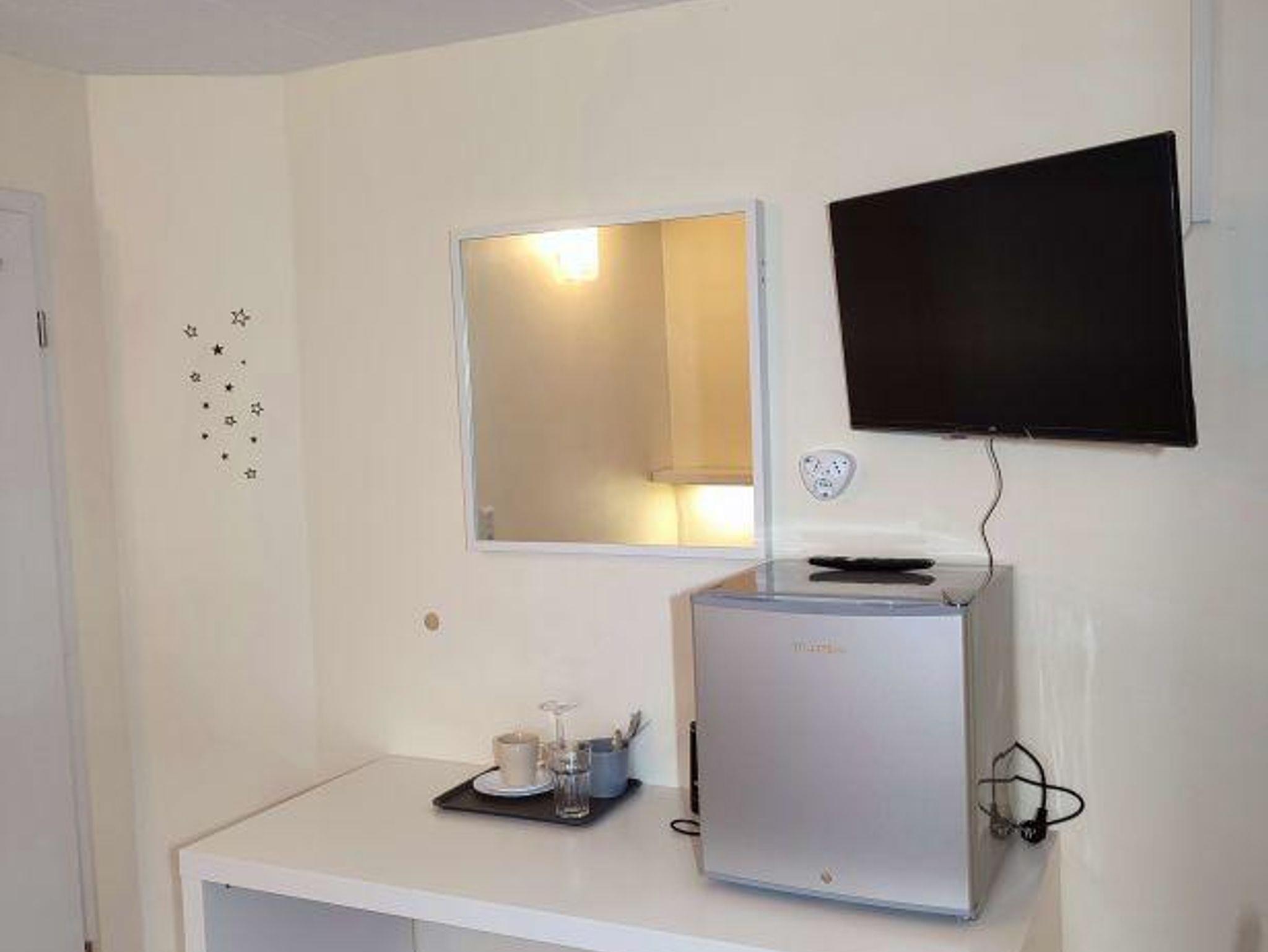 Das Einzelzimmer mit Du/WC, TV und WLAN (Dachschräge möglich) ist mit Kühlschrank, Wasserkocher und Tischset ausgestattet. Gegen Entgelt kann der Kühlschrank mit Getränken und Diverses bestückt werden.