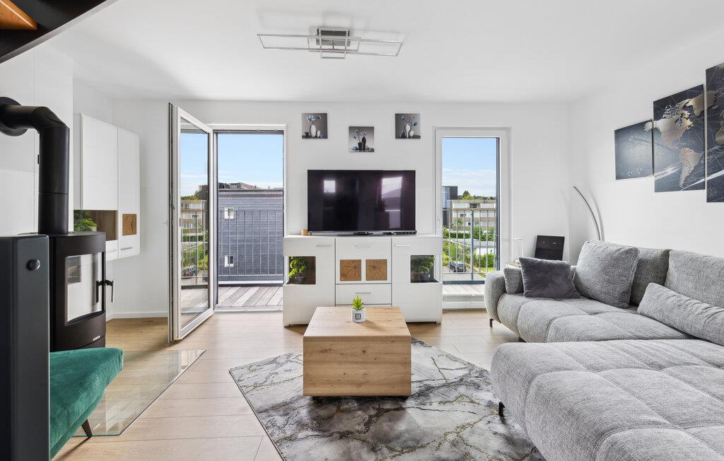 Men det er ikke bare i ferieleiligheten du kan tilbringe herlige timer. På varme sommerdager kan du slappe av på takterrassen og balkongen med hagemøbler. Her kan du nyte en koselig frokost og tilberede deilige måltider på grillen. Fra takterrassen har du panoramautsikt over fjellene og landskapet.