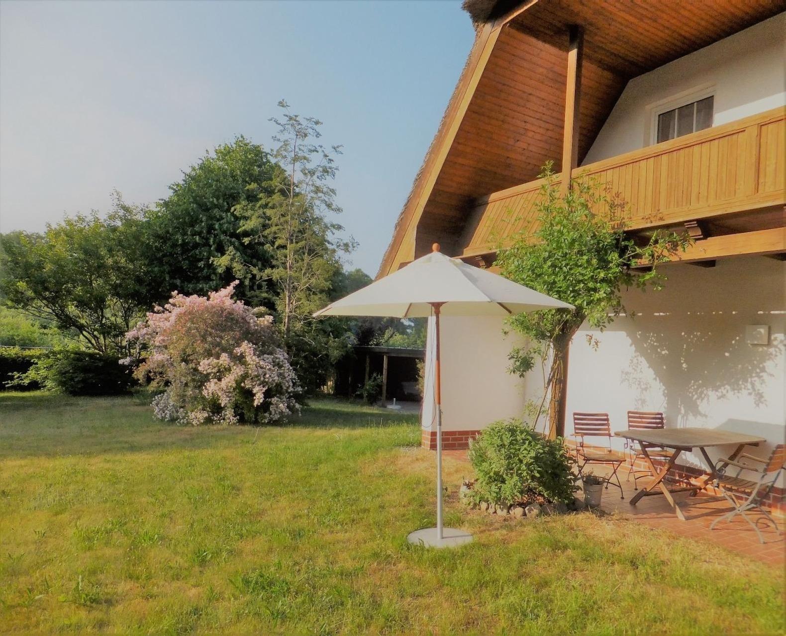 Ruhig gelegene ebenerdige Reetdach - Ferienwohnung " Spann mol ut " und nur 4 Km vom Seebad Binz entfernt.