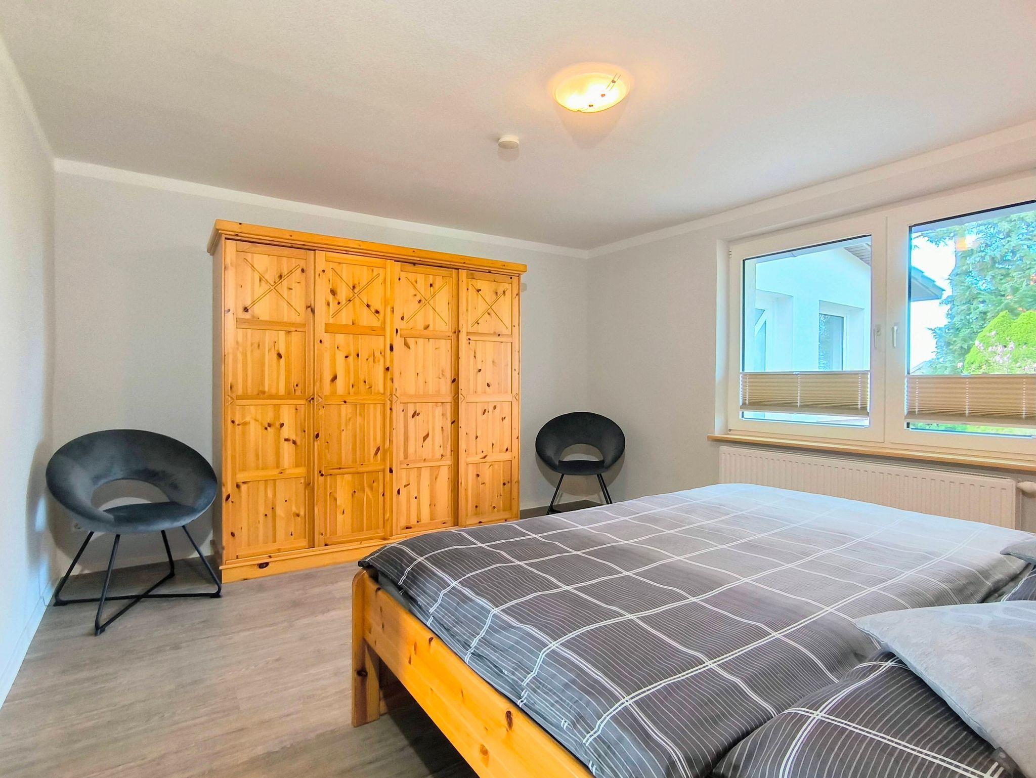 Sowie einem separatem Schlafzimmer mit Doppelbett und großem Kleiderschrank, ebenfalls aus Holz. Ein Einzelbett bzw. Liege ist bei Bedarf zustellbar.