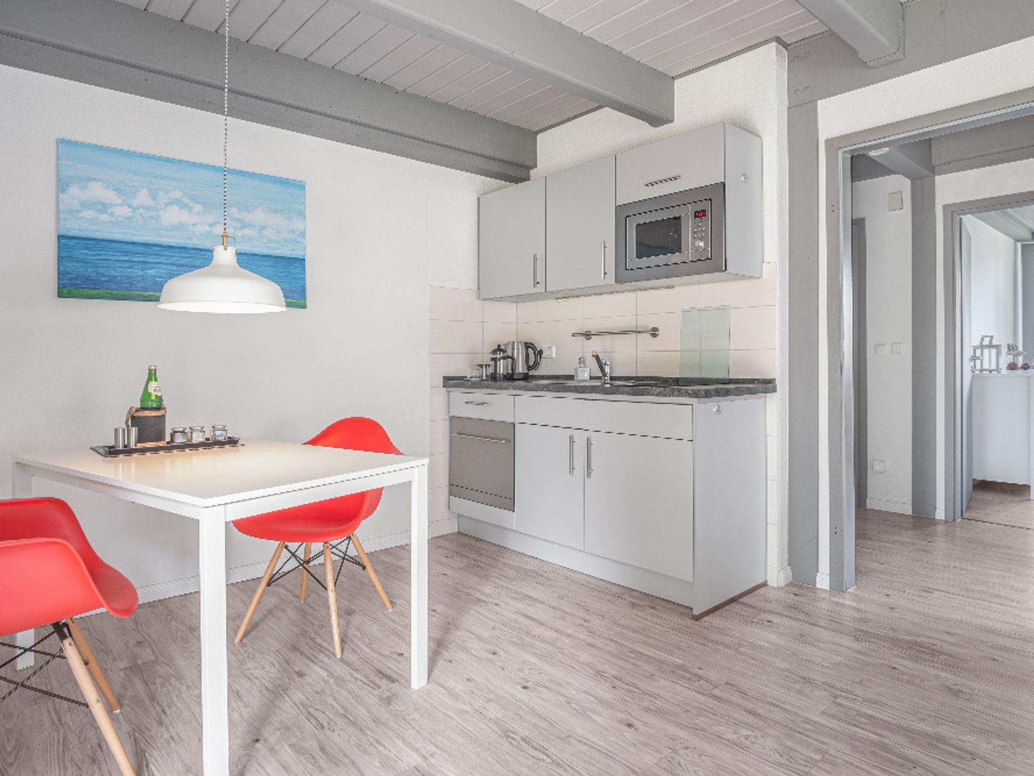 Auf 40 Quadratmetern bietet Dir Deine Unterkunft alle Annehmlichkeiten, die Du für den perfekten Urlaub benötigst: eine voll ausgestattete Küchenzeile mit Geschirrspüler und Kaffeemaschine - eine Mikrowelle, Toaster, Kühlschrank und ein Wasserkocher sind ebenfalls vorhanden.