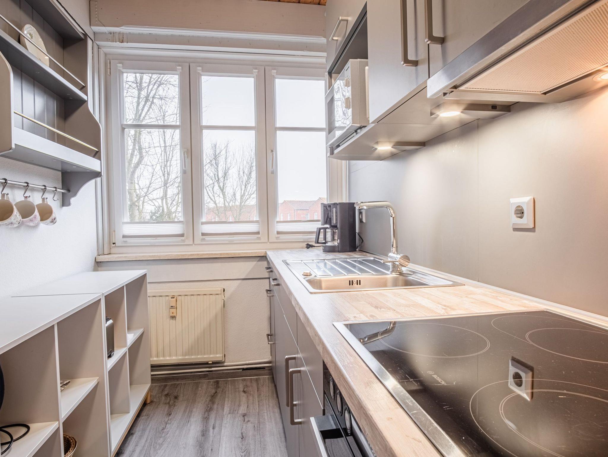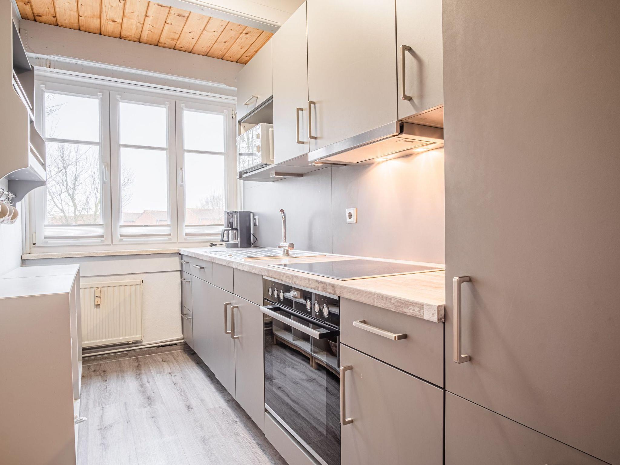 Die seperate neue Küche ist mit einem 4 Platten Cerankochfeld, mit einem Backofen, einer Mikrowelle, einem Kühlschrank, einer Kaffeemaschine, einem Toaster, einem Wasserkocher und Geschirrspüler voll ausgestattet. WLAN ist vorhanden.