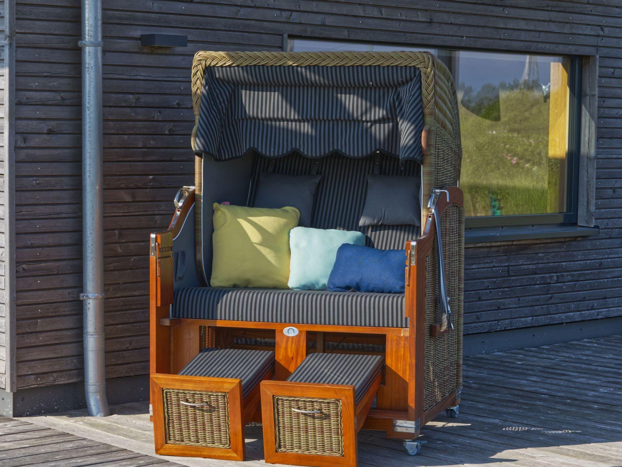 Ihre Mahlzeiten können Sie auch ganz in Ruhe auf der großen Terrassenfläche einnehmen. Ein Terrassentisch und 8 Stühle sind dafür vorhanden. Drei Liegen laden zum ausgiebigen Sonnenbaden ein. Der Garten bietet viel Erholungs- und Spielfläche. Auch in den kühleren Monaten ergänzen sich Natur und Haus perfekt. Machen Sie es sich nach ausgiebigen Deichwanderungen in frischer Meeresluft einfach in der Sauna oder auf dem Sofa gemütlich oder geben Sie sich dem hin, was hier am besten funktioniert: dem gepflegten Nichtstun!
