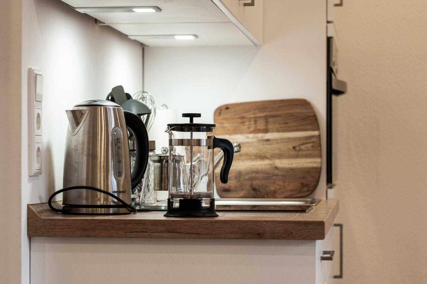 Die lichtdurchflutete Wohnung verfügt über ein geschmackvoll eingerichtetes Schlafzimmer oder Wohnbereich, der Ihnen den idealen Rückzugsort bietet, um nach einem aktiven Tag in der Natur zu entspannen. Die Küche, die elegant in das Wohnambiente eingebettet ist, ist mit modernen Annehmlichkeiten wie Cerankochfeld, Backofen, Kühlschrank, Mikrowelle, Geschirrspüler und weiteren Küchenutensilien ausgestattet. Hier können Sie ganz einfach kulinarische Genüsse zubereiten. Ein optionaler Brötchenservice kann Ihren Morgen noch genussvoller machen.