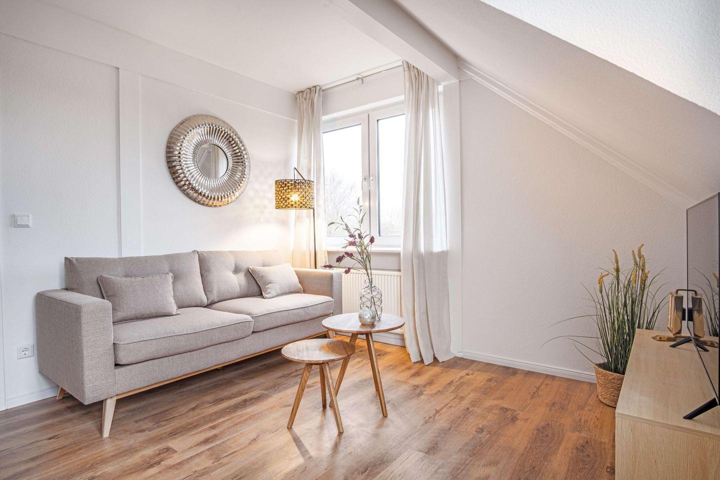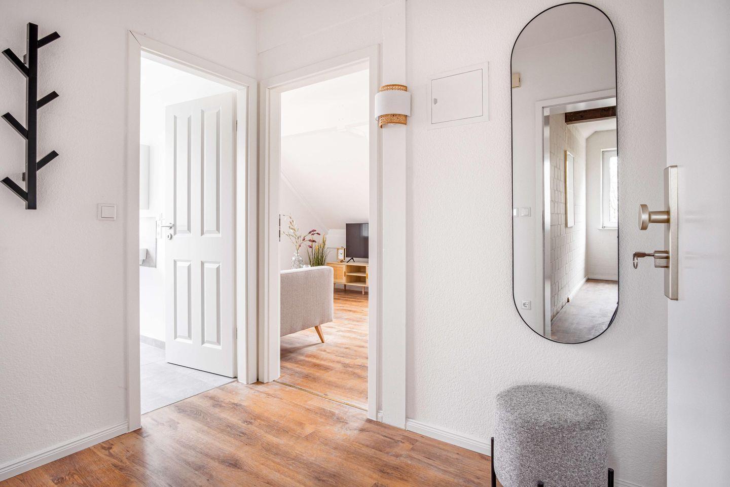 Die Wohnung ist mit einer voll ausgestatteten Küche, einem komfortablen Wohnbereich mit TV, WLAN sowie einem stilvollen Bad eingerichtet. Ein Balkon oder Dachfenster sorgt für viel Tageslicht und lädt zum Verweilen ein.