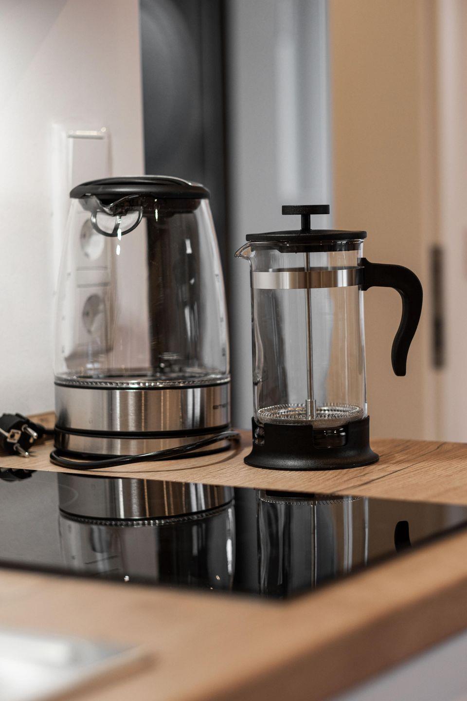 Die lichtdurchflutete Wohnung verfügt über ein geschmackvoll eingerichtetes Schlafzimmer oder Wohnbereich, der Ihnen den idealen Rückzugsort bietet, um nach einem aktiven Tag in der Natur zu entspannen. Die Küche, die elegant in das Wohnambiente eingebettet ist, ist mit modernen Annehmlichkeiten wie Cerankochfeld, Backofen, Kühlschrank, Mikrowelle, Geschirrspüler und weiteren Küchenutensilien ausgestattet. Hier können Sie ganz einfach kulinarische Genüsse zubereiten. Ein optionaler Brötchenservice kann Ihren Morgen noch genussvoller machen.
