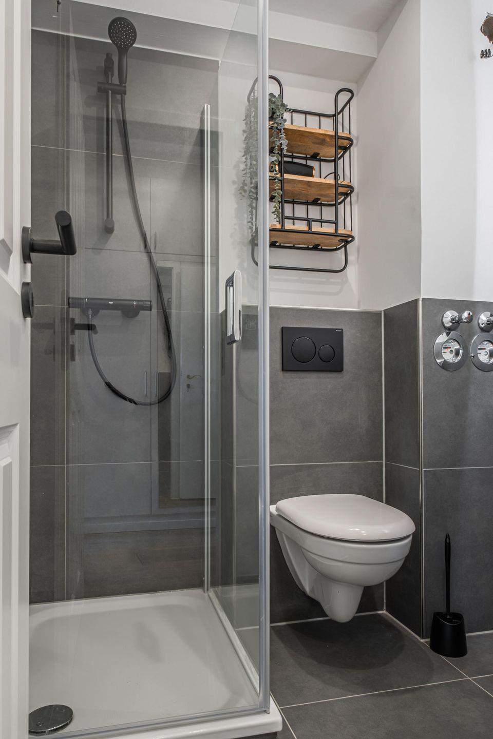 Das gepflegte Badezimmer verfügt über eine Dusche, ein WC sowie einen Fön. Frische Handtücher und Bettwäsche sind im Preis inbegriffen – ebenso wie die Endreinigung. Für längere Aufenthalte können Sie auf Wunsch gegen Gebühr Waschmaschine und Trockner im Haus nutzen.