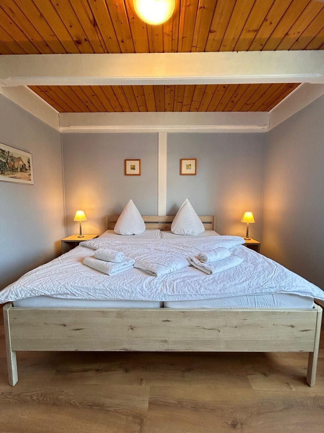 Zur Wohnung gehört ein eigener Balkon mit Sitzmöglichkeit, zusätzlich steht eine Liegewiese allen Gästen offen. Bettwäsche, Handtücher und die Endreinigung sind im Preis enthalten. Waschmaschine und Wäschetrockner können gegen Gebühr genutzt werden. Nichtraucherwohnung. 4-Sterne-DTV-Klassifizierung. PKW-Stellplatz und Fahrradhaus mit E-Bike-Ladestation sind vorhanden.