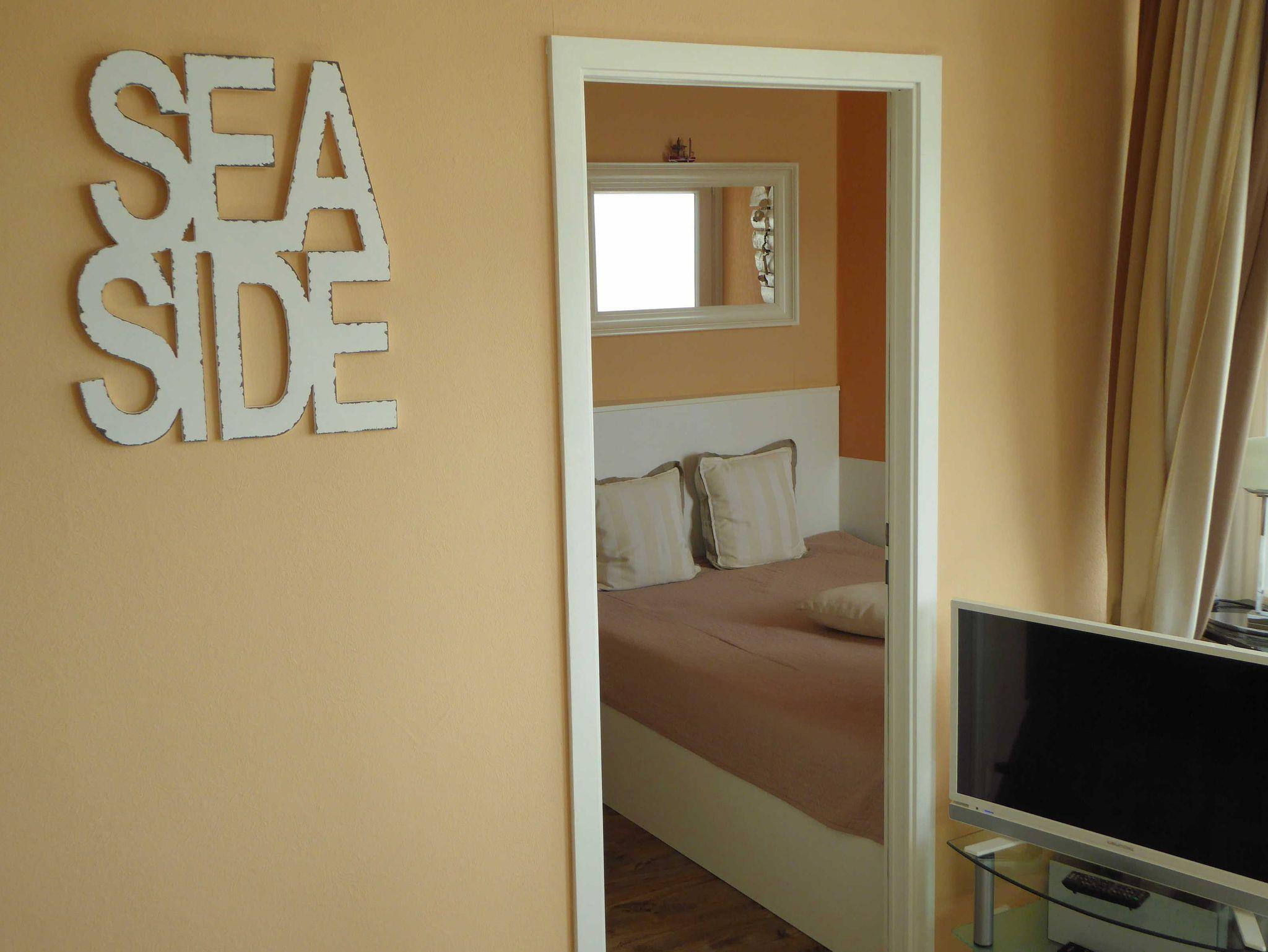 Das sehr geschmackvoll eingerichtete Appartement bietet einen fantastischen Blick über den langen weißen Sandstrand und das Meer. Die mit viel Liebe zum Detail ausgestattete helle Wohnung besteht aus einem kombinierten Wohn-/Schlafraum mit einem komfortablen Schrankdoppelbett (1,60 x 2 m), einer hochwertigen, komplett eingerichteten weißen Einbauküche (inkl. Spülmaschine und Mikrowelle) sowie integriertem Essplatz. Das Ledersofa im Wohnbereich lädt zum gemütlichen Lesen oder Fernsehen ein. Das kleine charmante Schlafzimmer ist mit einem französischen Bett eingerichtet (1,40 x 1,90 m), der optimal eingepasste Kleiderschrank bietet viel Stauraum. Natürlich verfügt die Wohnung auch über ein, in 2026 frisch saniertes, schönes Duschbad mit WC. Vom Balkon im 7. Stock genießen unsere Gäste den herrlichen Ausblick über die Lübecker Bucht bis nach Rettin.