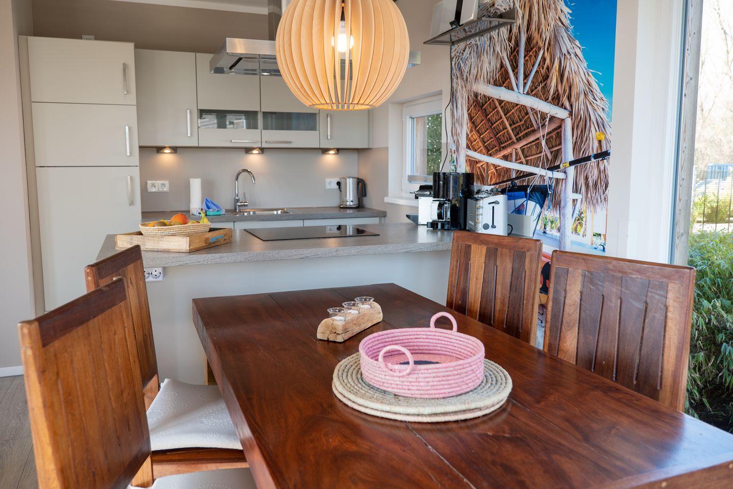 Unsere Typ B1 Ferienhäuser laden Sie aufgrund ihres offenen Wohn-Essbereich zum Beisammensein und gemeinsamen Urlaub ein. Verbringen Sie sonnige Stunden auf Balkon und Terrasse oder lassen Sie sich bei Wind und Regen vor dem warmen Kamin aufwärmen.