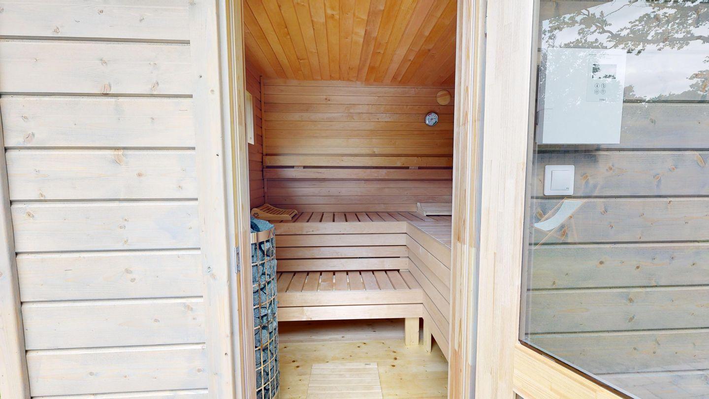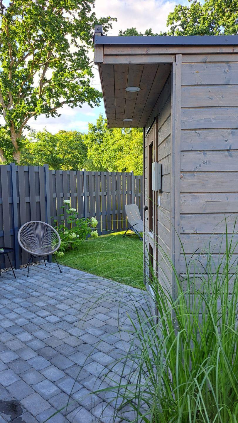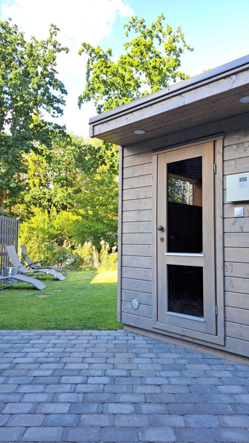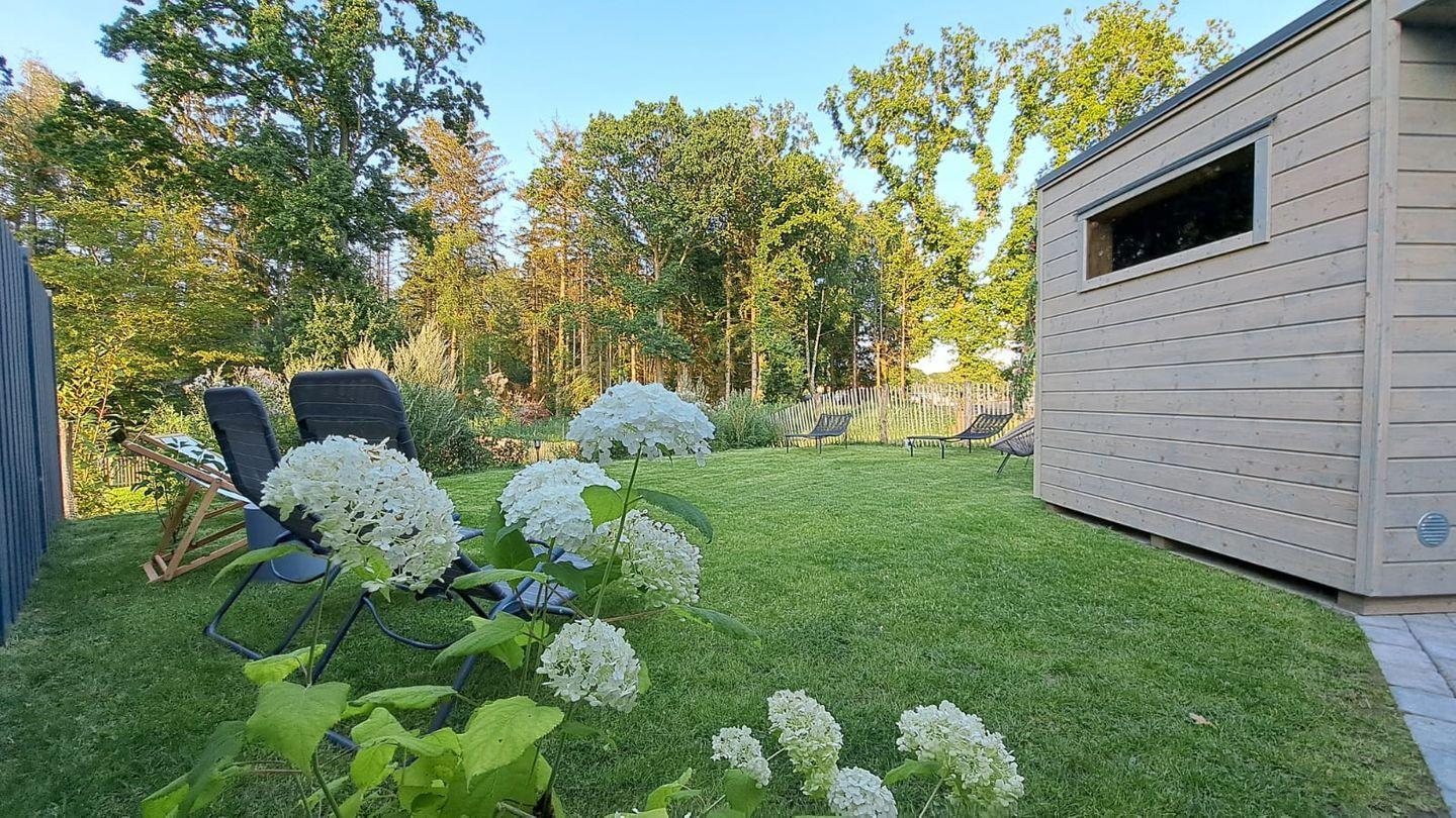 Genießen Sie die Ruhe: die Küstenwaldbude liegt in einer friedlichen Sackgasse, umgeben von Natur mit einem angrenzendem Waldgrundstück. Sie haben die Wahl zwischen zwei Terrassen, so dass sie jederzeit einen Sonnen- und Schattenplatz finden können. Zusätzlich befindet sich auf der hinteren Terrasse ein Saunahaus zur alleinigen Nutzung, wo Sie ungestört vor fremden Blicken entspannen können.