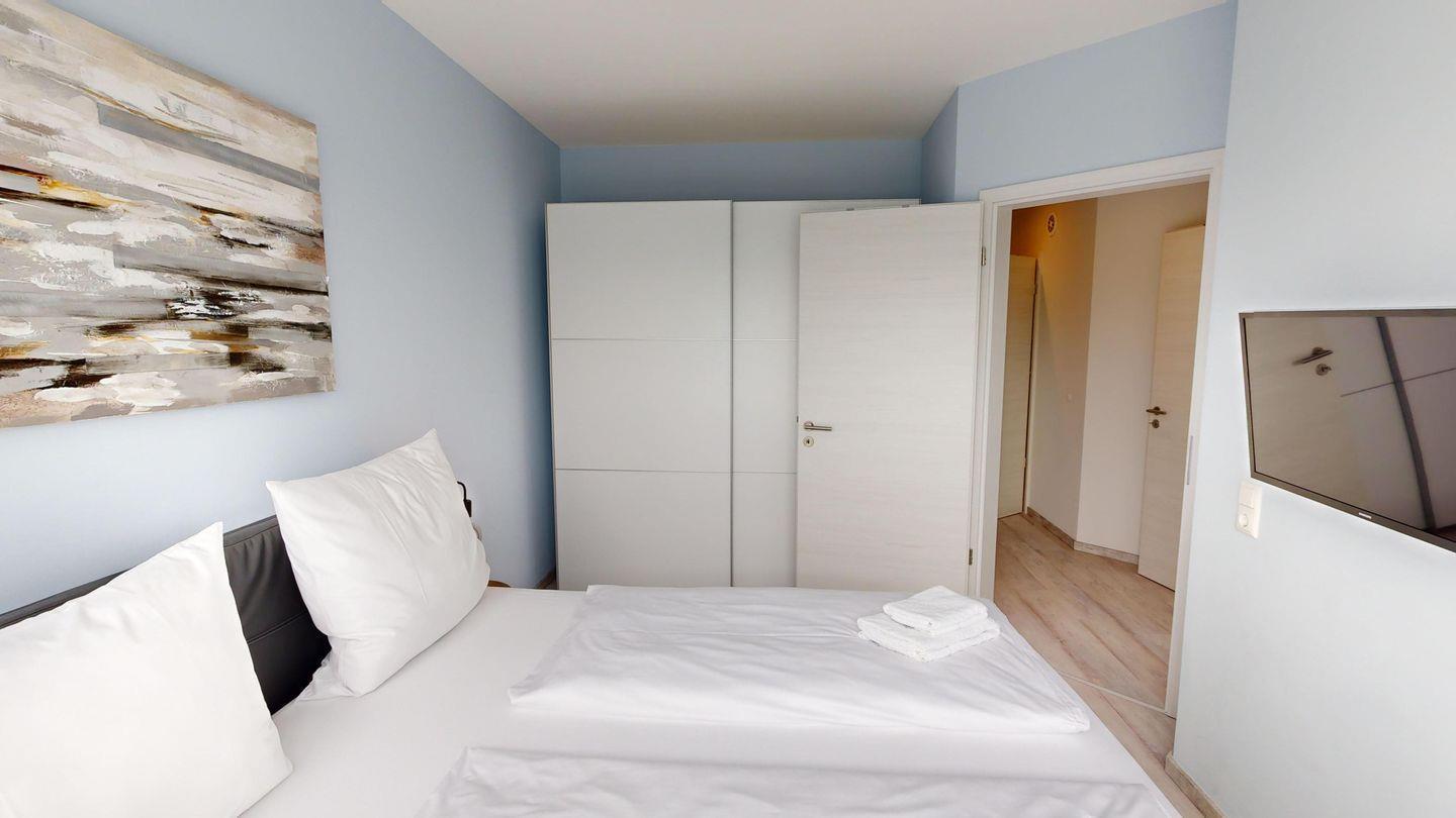 Jedes Schlafzimmer ist mit einem hochwertigen Boxspringbett und einem Smart- TV ausgestattet. Die elektrischen Außenjalousien sorgen für die perfekte Verdunkelung.