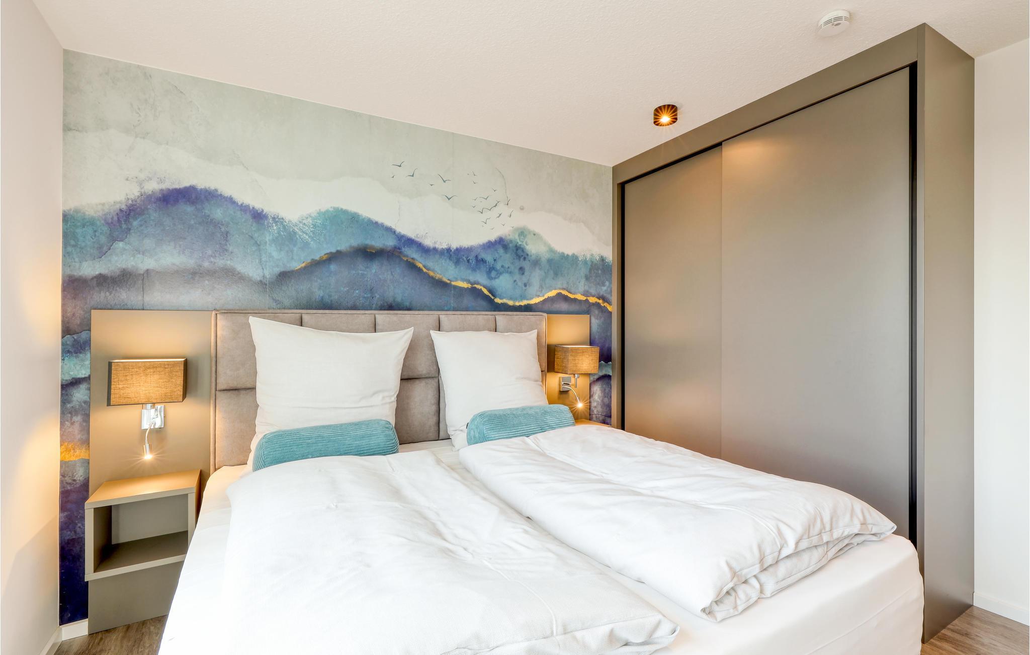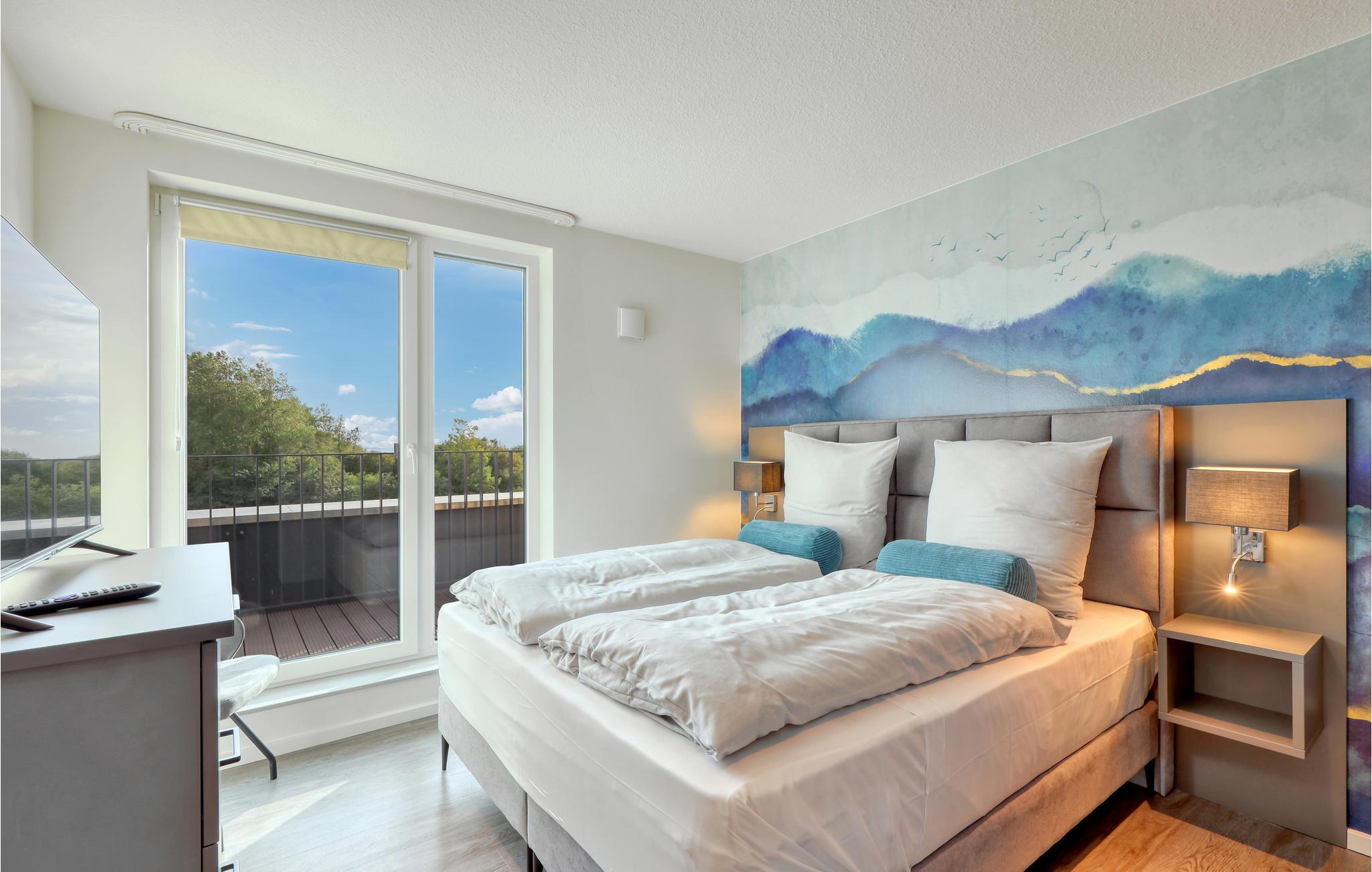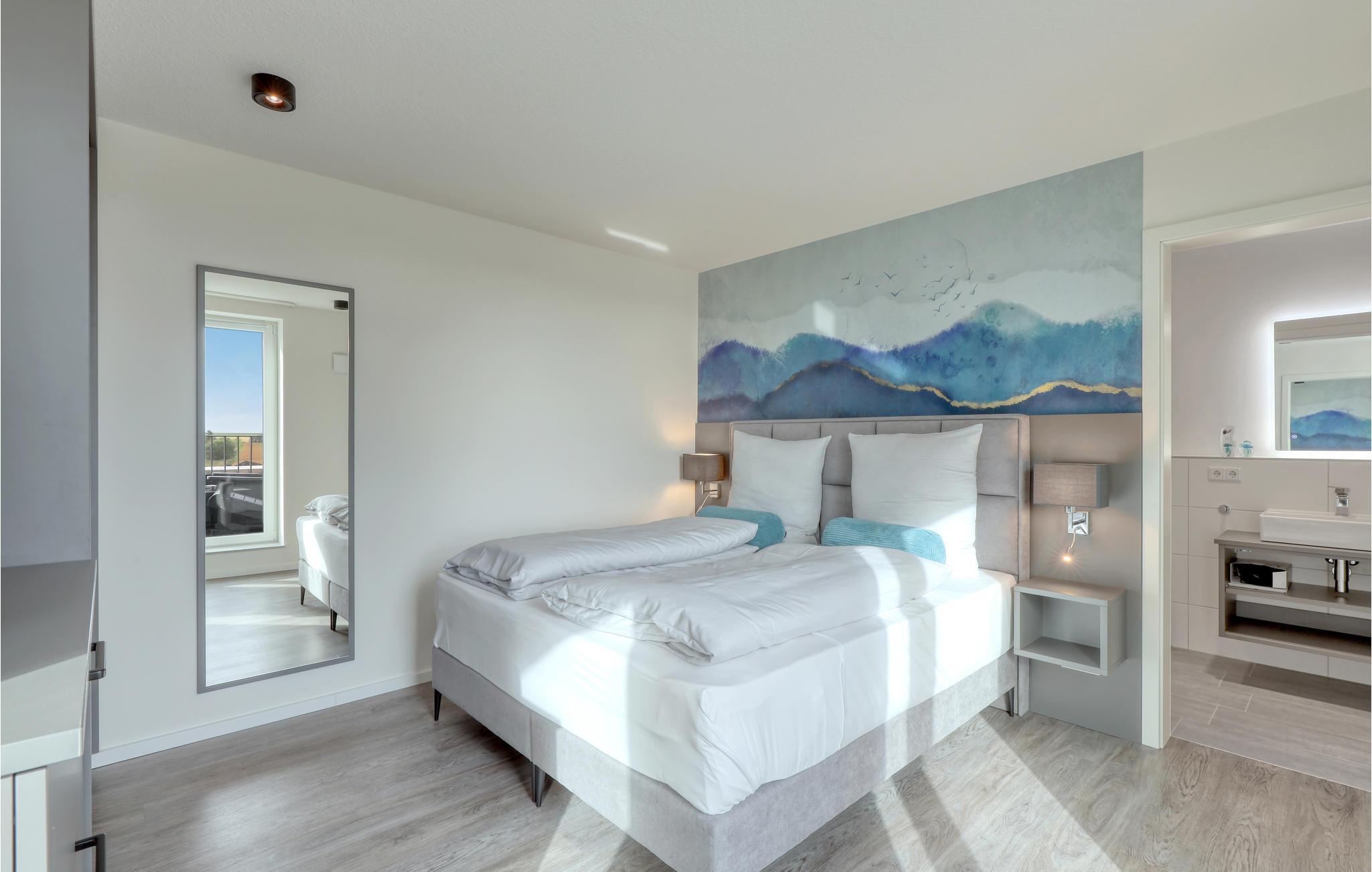 Velkommen til Nordstrand, en vakker halvøy på Schleswig-Holsteins nordsjøkyst i Vadehavet, som står på UNESCOs verdensarvliste. Det moderne huset med flere ferieleiligheter er en ekte juvel midt i naturen, og beliggenheten rett bak diget får hjertet til enhver Nordsjø-fan til å slå raskere. Det moderne maritime uttrykket i den eksklusive toppleiligheten setter deg umiddelbart i feriestemning. Sjenerøse vindusflater slipper inn rikelig med dagslys og gir en fantastisk utsikt over det omkringliggende landskapet. Med sitt fokus på bærekraft er feriehuset det ideelle stedet for feriegjester som setter pris på avslapning i harmoni med naturen. Start dagen med en deilig frokost i den koselige stuen med åpen kjøkkenløsning, og nyt utsikten fra takterrassen når det er fint vær.