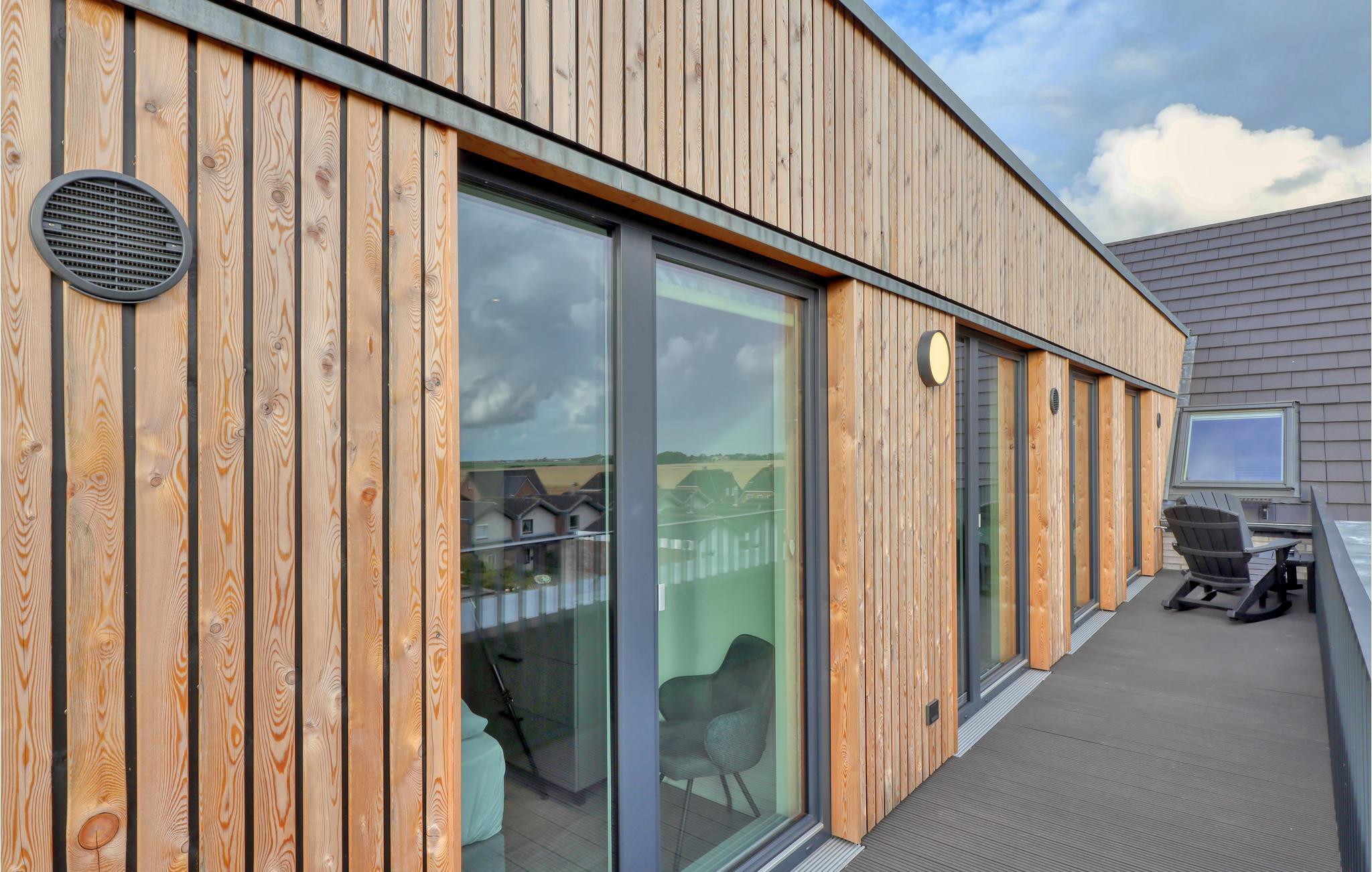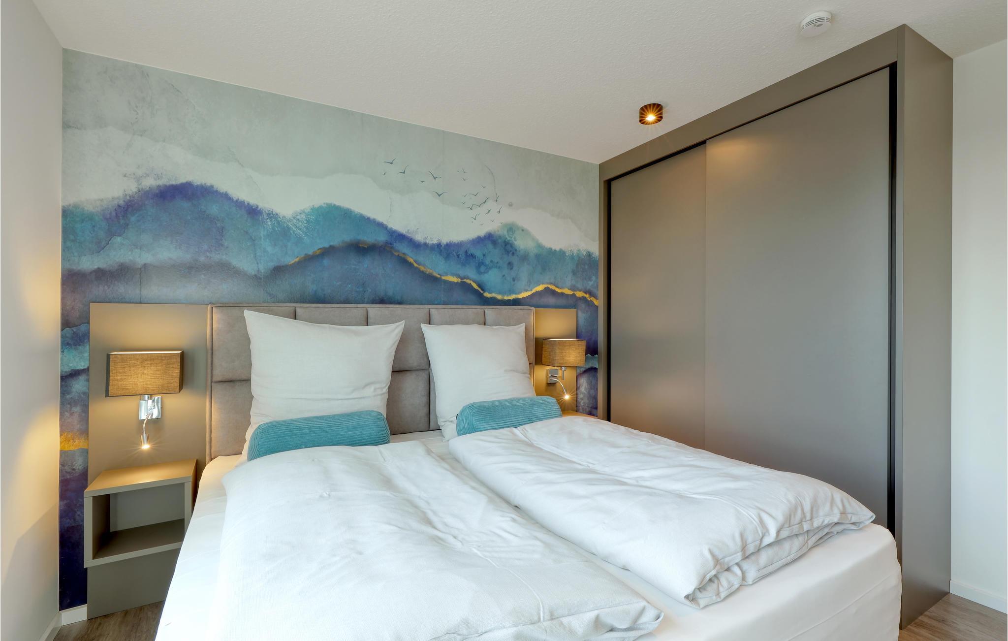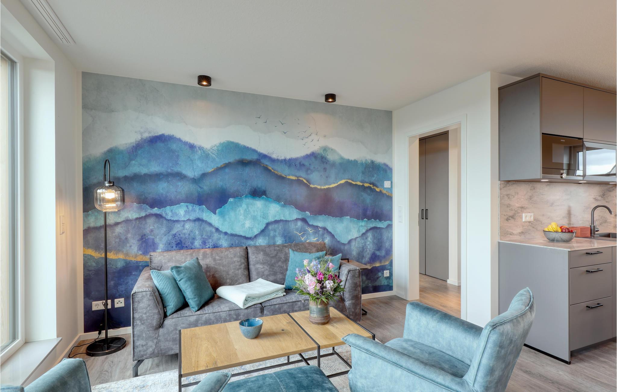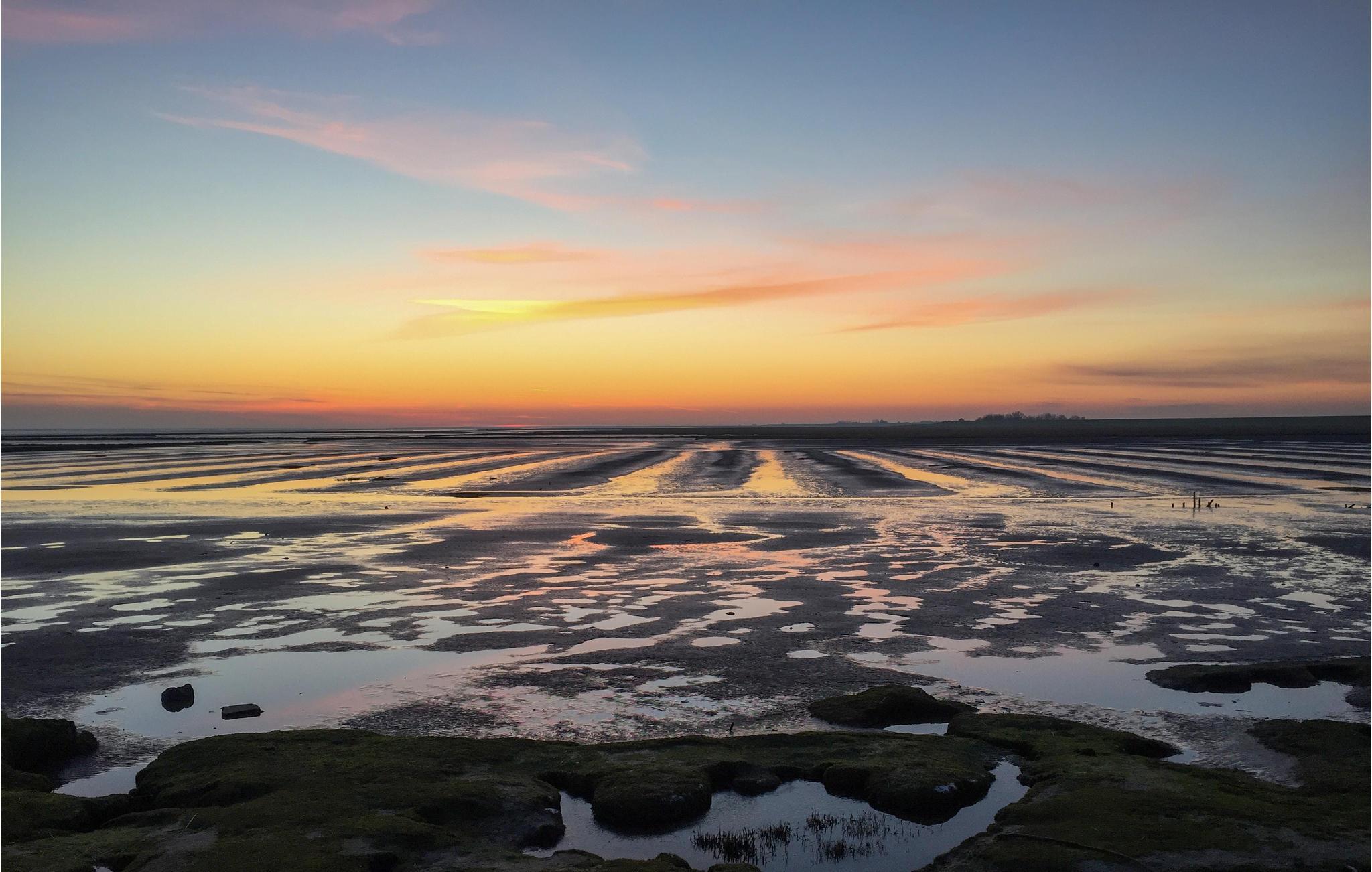 Velkommen til Nordstrand, en vakker halvøy på Schleswig-Holsteins nordsjøkyst i Vadehavet, som står på UNESCOs verdensarvliste. Det moderne huset med flere ferieleiligheter er en ekte juvel midt i naturen, og beliggenheten rett bak diget får hjertet til enhver Nordsjø-fan til å slå raskere. Det moderne maritime uttrykket i den eksklusive toppleiligheten setter deg umiddelbart i feriestemning. Sjenerøse vindusflater slipper inn rikelig med dagslys og gir en fantastisk utsikt over det omkringliggende landskapet. Med sitt fokus på bærekraft er feriehuset det ideelle stedet for feriegjester som setter pris på avslapning i harmoni med naturen. Start dagen med en deilig frokost i den koselige stuen med åpen kjøkkenløsning, og nyt utsikten fra takterrassen når det er fint vær.