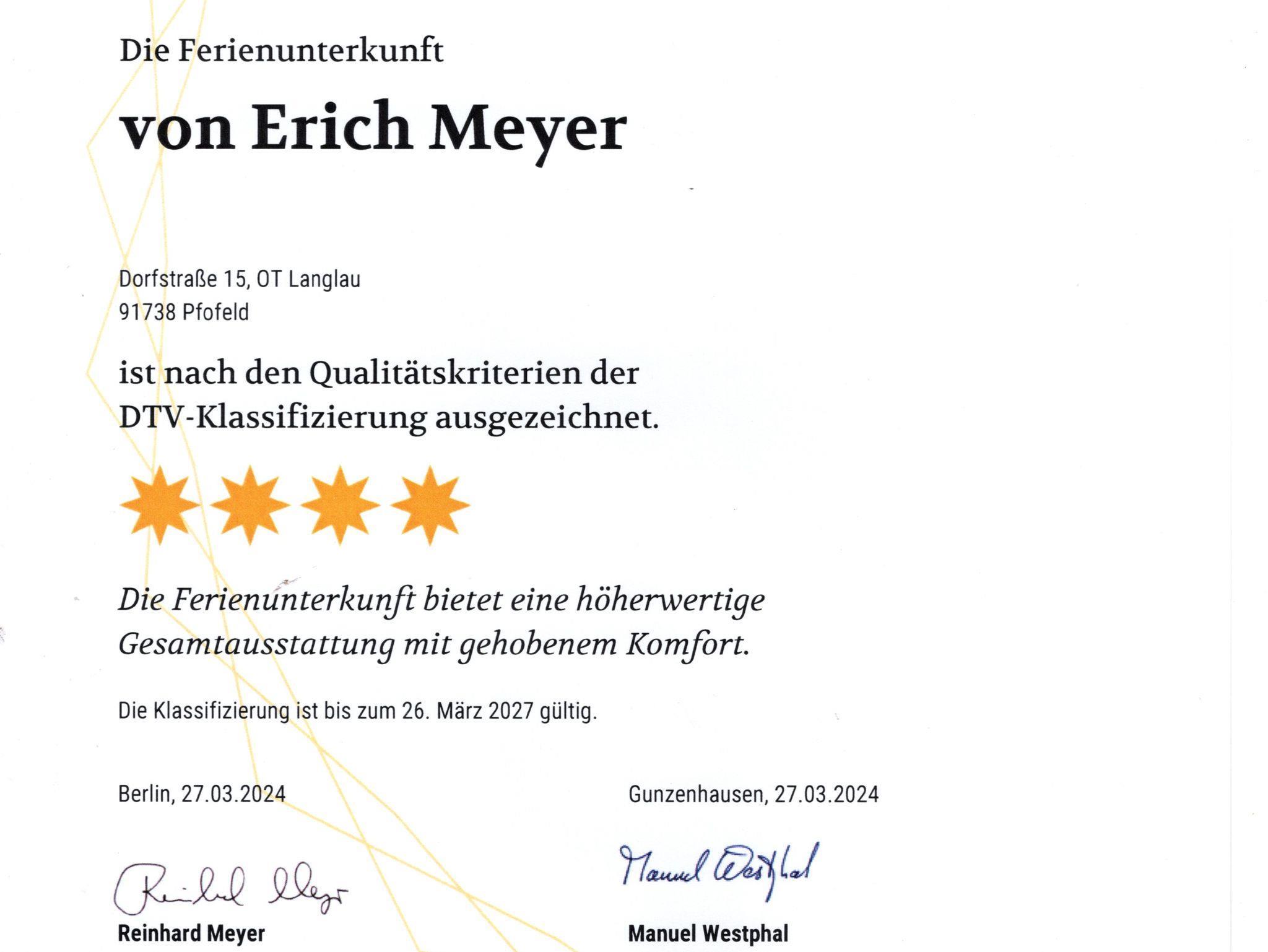 Sie ist klassifiziert mit 4 Sternen nach den Kriterien des Deutschen Tourismusverbands.