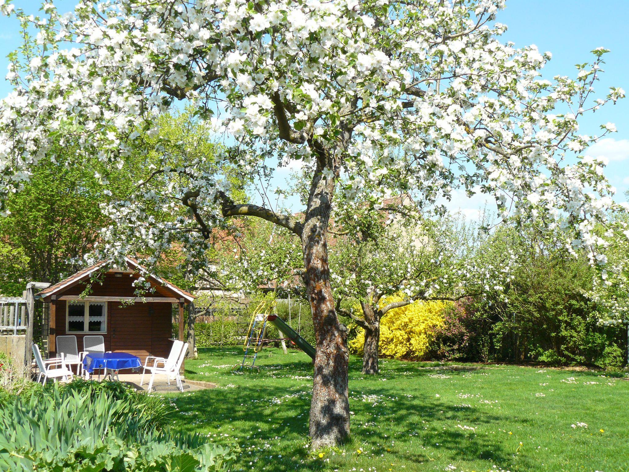 Verschiedene Sitzecken und ein Gartenhaus laden zum Verweilen ein. Selbstverständlich stehen Ihnen auch Liegen und ein Grill zur Verfügung.