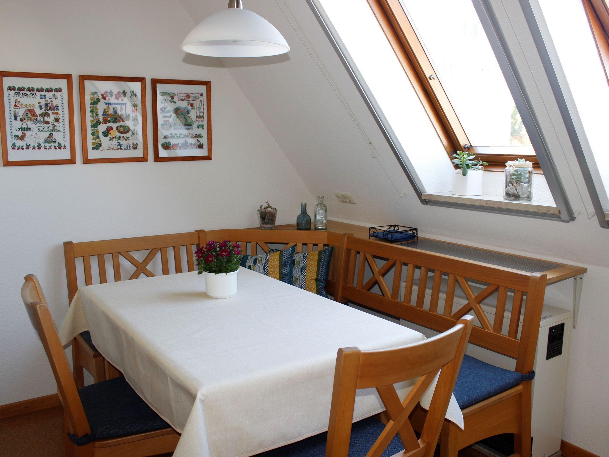 Die helle und freundliche Nichtraucher-Ferienwohnung mit 54 m² in der 1. Etage (DG) bietet Platz für 4 Personen.