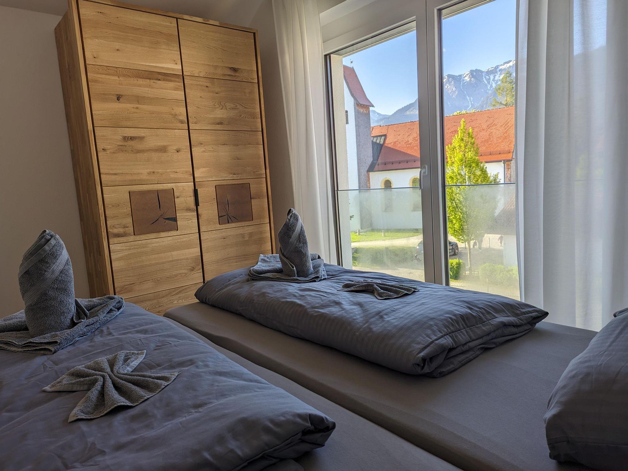 Der große Balkon mit Sitzgarnitur erlaubt Ihnen wunderbare Impressionen der Pfrontener Bergwelt.