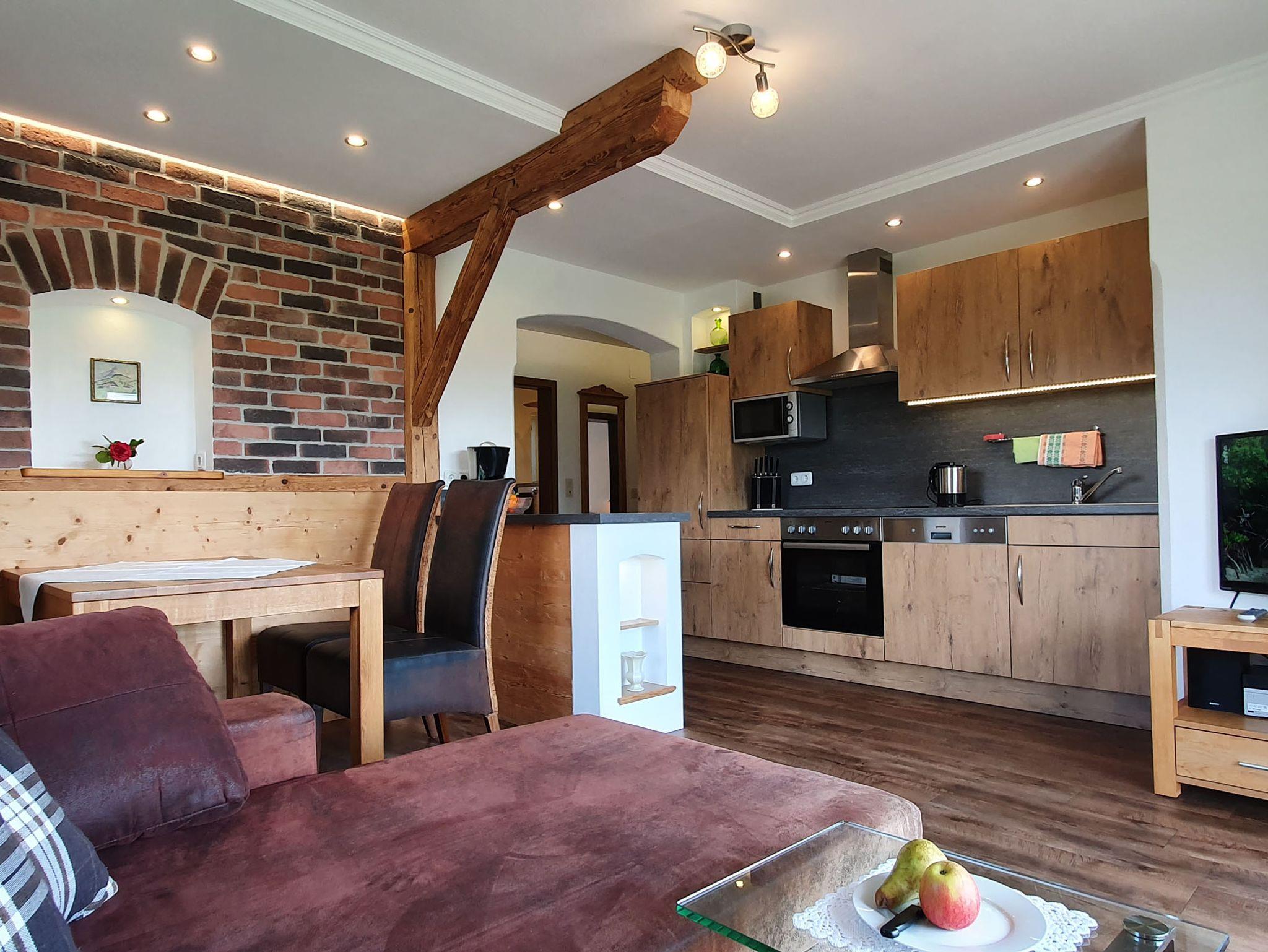 Fuchsbauernhof, Ferienwohnung Almrausch 71 qm, 2 Schlafzimmer, Wohnküche mit Sofa, Terrasse