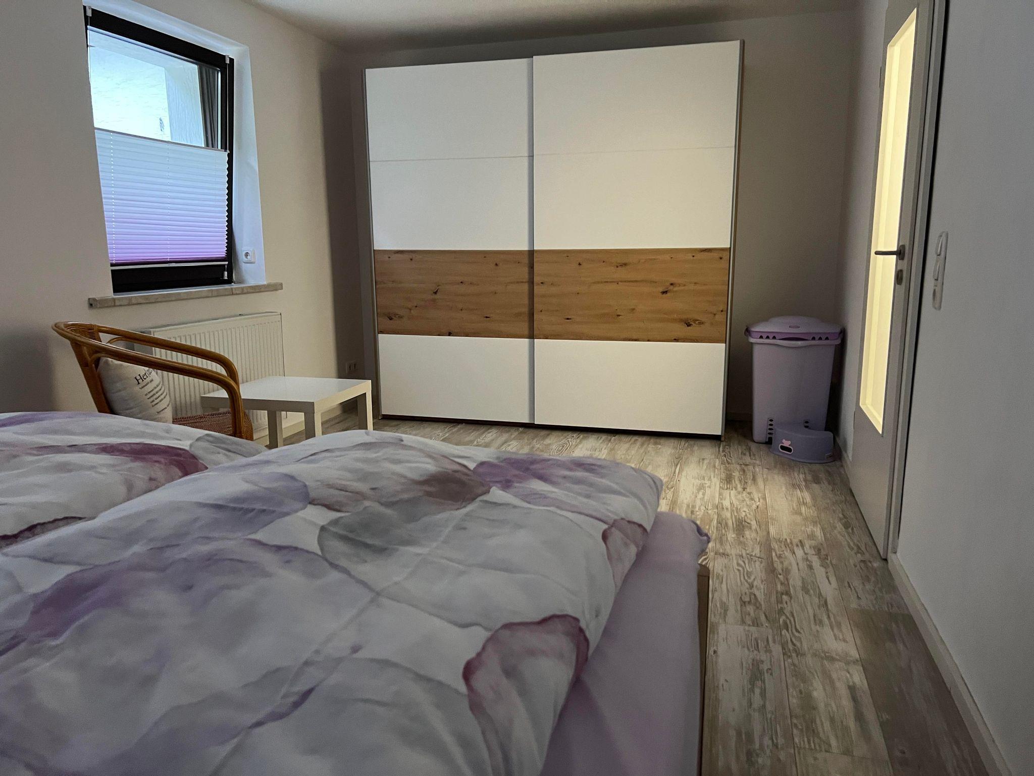 Mit viel Liebe haben wir im Juni 2024 ein ca. 80 m² große Ferienwohung im angrenzenden Reihenhaus für bis zu 4 Gäste + 1 Kleinkind modern eingerichtet. Im Erdgeschoss befindet sich die Wohnküche mir Kochinsel und Esstisch, ein Wohnzimmer sowie ein Gäste-WC. Im Obergeschoss sind zwei Schlafzimmer und das Bad mit Wanne (keine Dusche). Auf der gemütlichen überdachten Terrasse in Richtung Wald, können Sie bei schönem Wetter unter Palmen, duftenden Zitruspflanzen sowie Feigenbäumen entspannen.