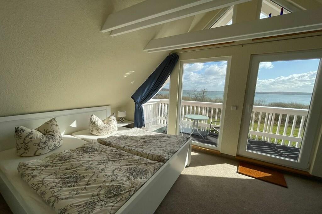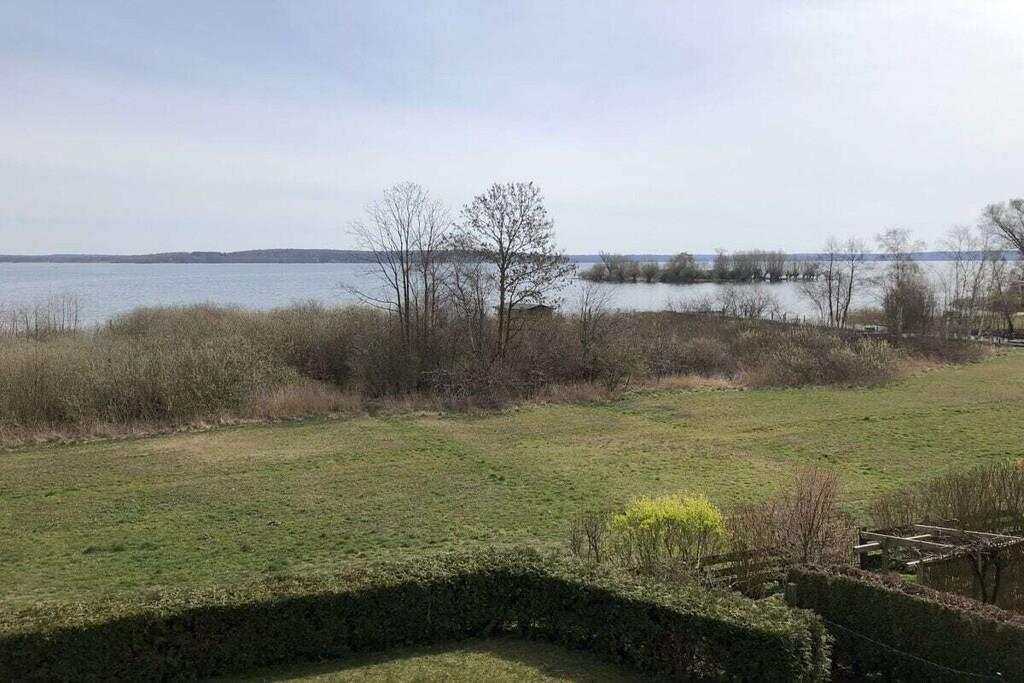 Spend your holiday in this relaxing holiday home in a fantastically beautiful location directly on Lake Plauer, quietly located and not far from the idyllic listed old town! The holiday home is located on a 500 sqm natural plot. There is a second holiday home on the adjacent property and can also be booked on request if desired. The furnishings in a Mediterranean ambience are cozy and comfortable over 2 floors with a spiral staircase and are only 50 meters from the beach with a playground. The exclusive holiday home has 100 m² of living space for 6 people. On the ground floor there is an open living and dining area with a fireplace, a fully equipped kitchen with a counter (stove with ceramic hob, oven, refrigerator with freezer compartment, dishwasher, microwave, coffee machine, kettle, toaster, sufficient dishes), 1 bedroom with a double bed, 1 shower room with sauna and a hallway with a cloakroom. On the upper floor there are 2 further bedrooms and an additional bathroom with a bathtub and washing machine. From the balcony or the terrace with awning you can enjoy the unique view of the lake in peace and quiet, have a relaxed breakfast or barbecue. Barbecues and loungers are available in the lockable outbuilding. Bicycles can also be parked here. There are also parking spaces for 2 cars and a trailer parking space.