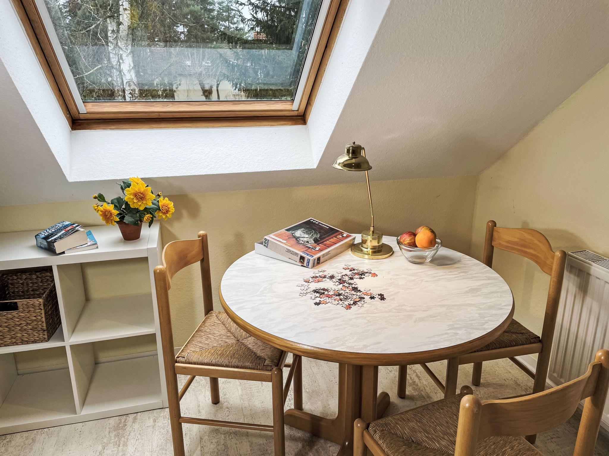 4-room house 89 m2 on 2 levels. Cosy furnishings: living/dining room with cable TV. Exit to the terrace. 1 double bedroom. Kitchenette (4 hot plates, oven, dishwasher, microwave, electric coffee machine). Sep. WC. Upper floor: 1 double bedroom with sloping ceilings. 1 room with sloping ceilings with 2 beds. Shower/WC. Gas heating. Terrace. Terrace furniture. Facilities: children's high chair, baby cot (extra). Parking (1 car). Please note: maximum 1 pet/ dog allowed. Smoke alarm. Bookings accepted for holiday purposes only.