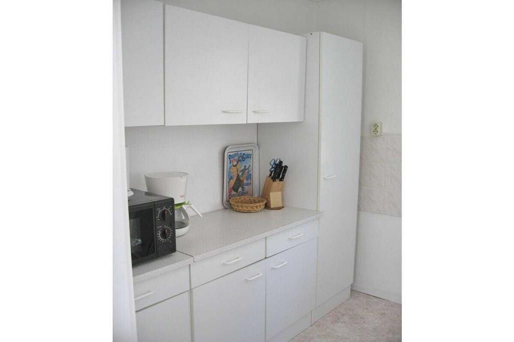 Første etasje: (Stue(, , , TV), Kjøkken(vannkoker, komfyr, kaffetrakter, stekovn, kjøleskap), soveværelse(dobbeltseng, dobbeltseng), soveværelse(dobbeltseng), bad(, WC, dusj, håndvask)) , , , entré(, spisebord), terrasse(hagemøbler), parkering, tørkeskap