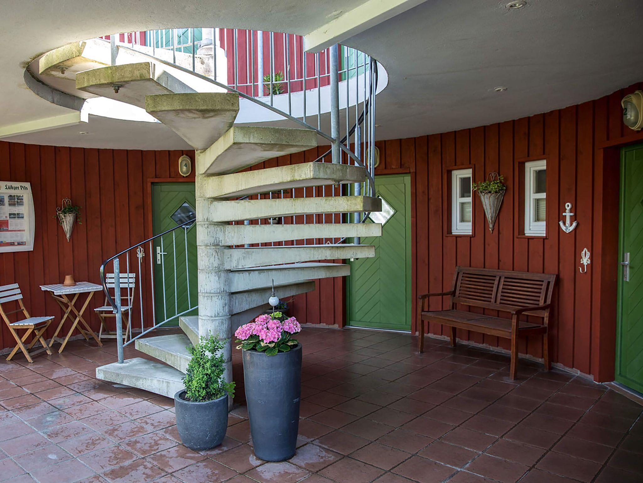 Die Appartementwohnungen befinden sich in architektonisch anspruchsvollen Rundbauten mit raffiniertem Zuschnitt, Sie öffnen sich zum Licht. Einige Appartements besitzen einen Balkon bzw. Terrasse oder Wasserblick. Weitere Annehmlichkeiten sind der Parkplatz direkt vor der Tür, die Sauna und das Solarium im Haus, für kalte Tage die behagliche Fußbodenheizung, der kostenlose Brötchenservice und nicht zu letzt die familiäre Betreuung.