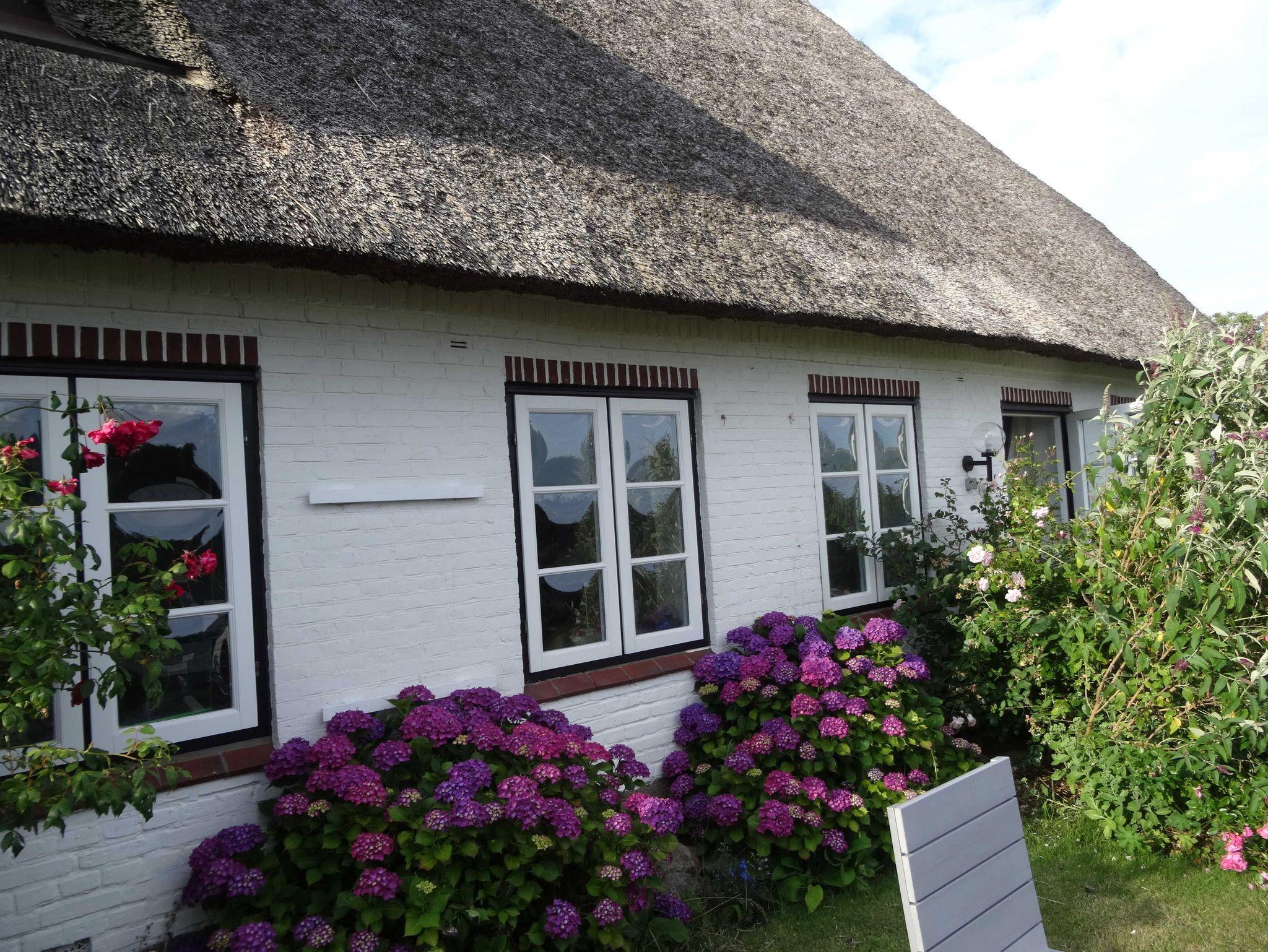 Die größte (105m²) von den 4 Ferienwohnungen - im historischen, wunderschönen Reetdachhaus - hat einen eigenem Eingang vom Innenhof und ist optimal für 4 Personen (+2). Vom Wohnzimmer kann man direkt den Garten betreten. Im Garten finden Sie mit eine 2er- u. eine 4er- Sitzgelegenheit mit Sonnenschirm.