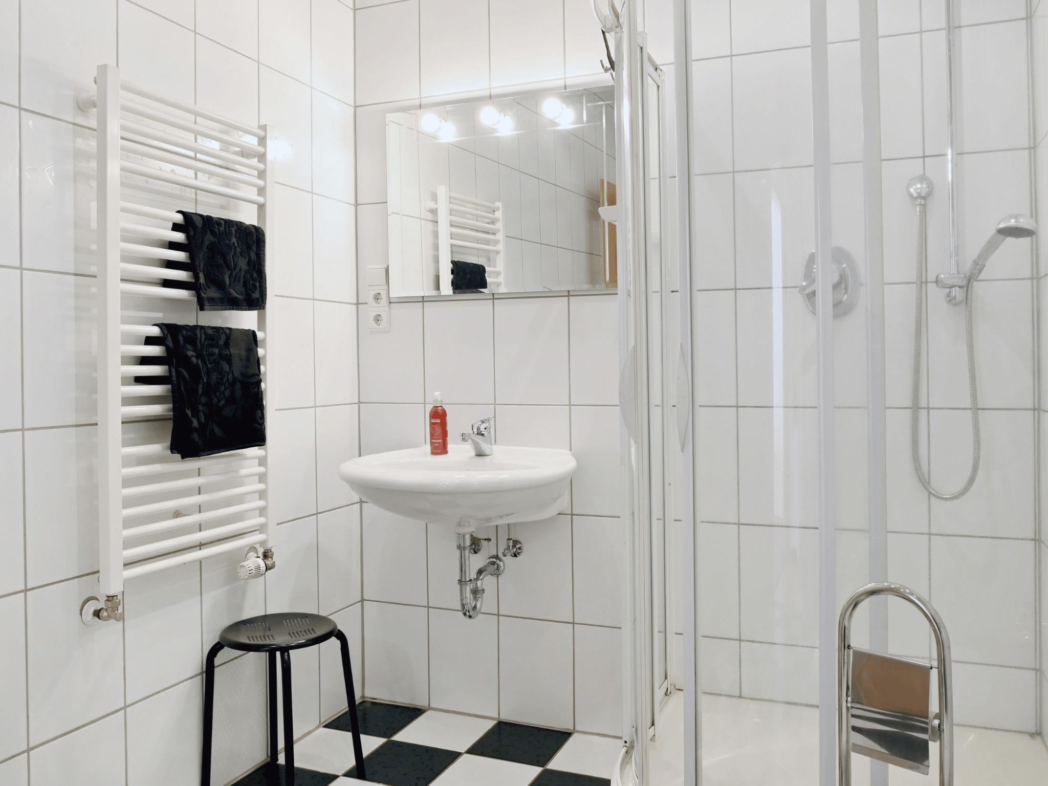 The flat is well-equipped to make your stay as comfortable as possible. The kitchen is equipped with modern amenities such as an induction hob, dishwasher and both a filter and pod coffee machine to prepare your morning coffee to your liking. A kettle completes the offer so that you can start your day just the way you like it.