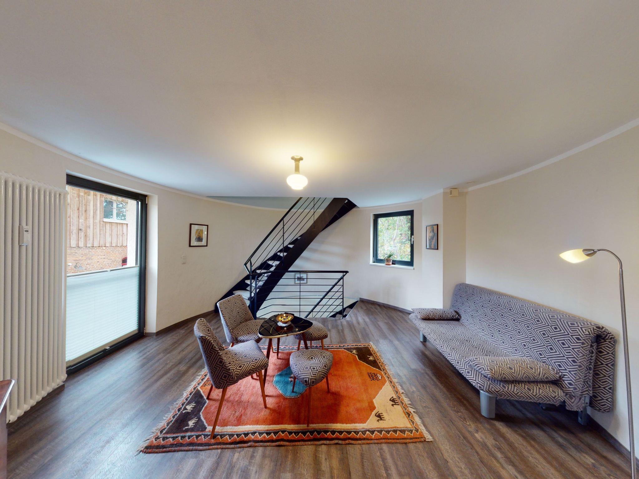 The holiday flat is located in a feed silo from the time of the lords of the manor, which was extensively reconstructed in 2005. The property is a listed building and is an eye-catcher at any time of year. The special experience is living in round rooms over 2 floors! Since 2022, a sauna has been available to guests on request and for a fee. Wellness and therapeutic massages can also be booked.