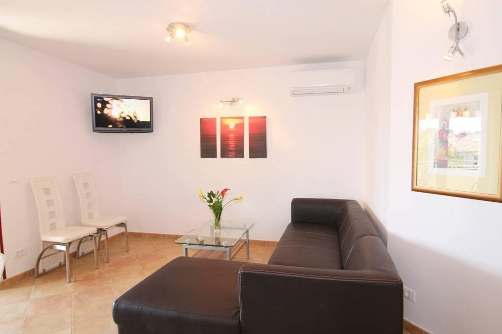 Der Balkon hat eine elektrische Markise als Sonnenschutz, Sie können bequem dort sitzen um zu frühstücken, sich zu entspannen oder abends den Sonnenuntergang genießen. Alle Fenster haben verstellbare Klappläden als Sicht- und Sonnenschutz.