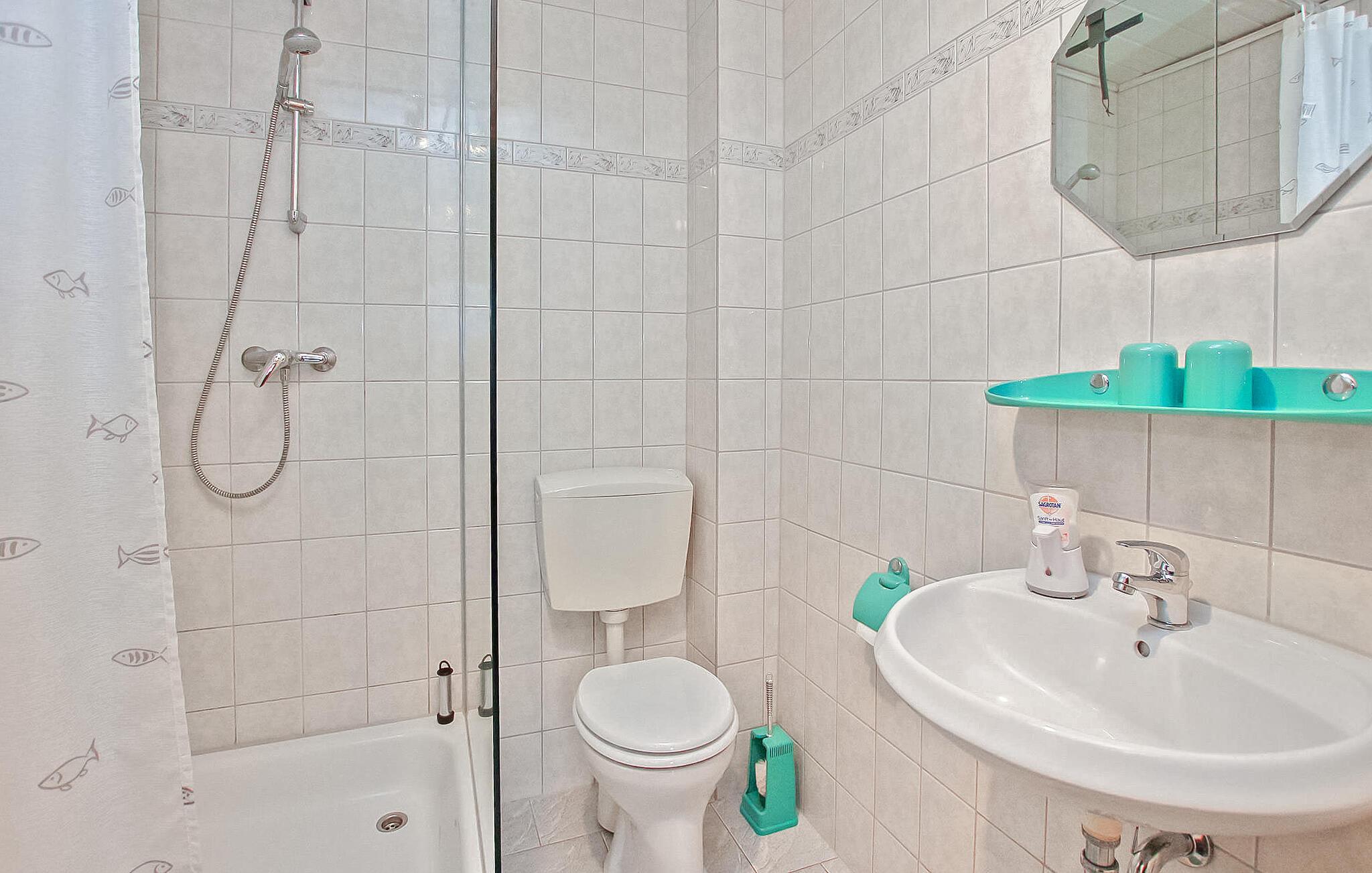 - WC med varmt og kaldt vann, Dusj