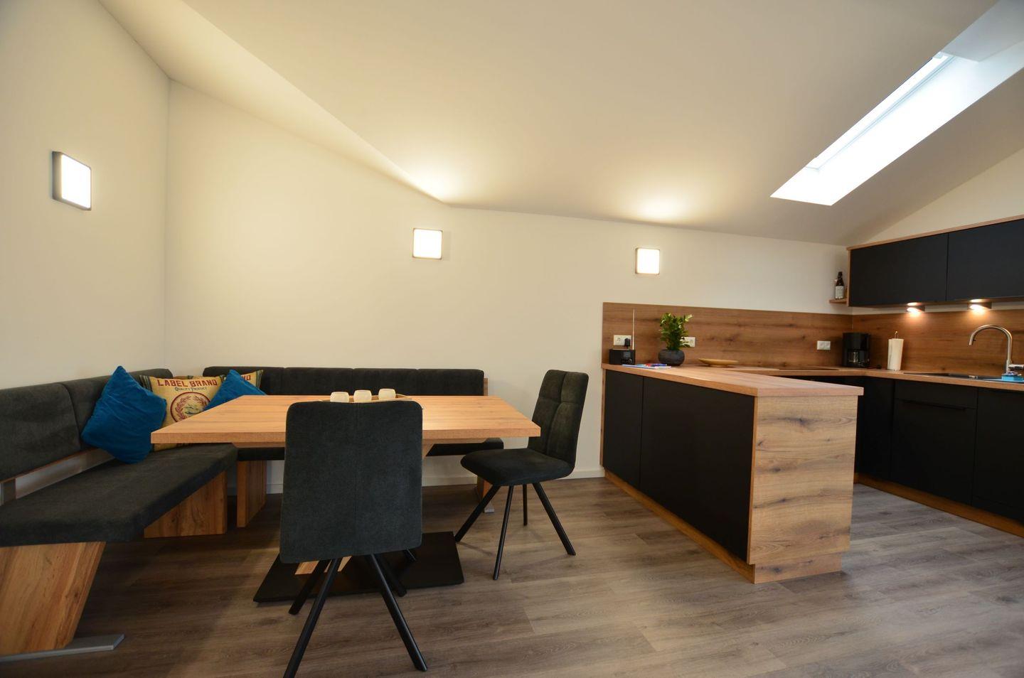 Die 100 qm große Ferienwohnung bietet Ihnen einen lichtdurchfluteten gemütlichen Wohn-, Küchen und Essbereich mit hochwertiger Möblierung.